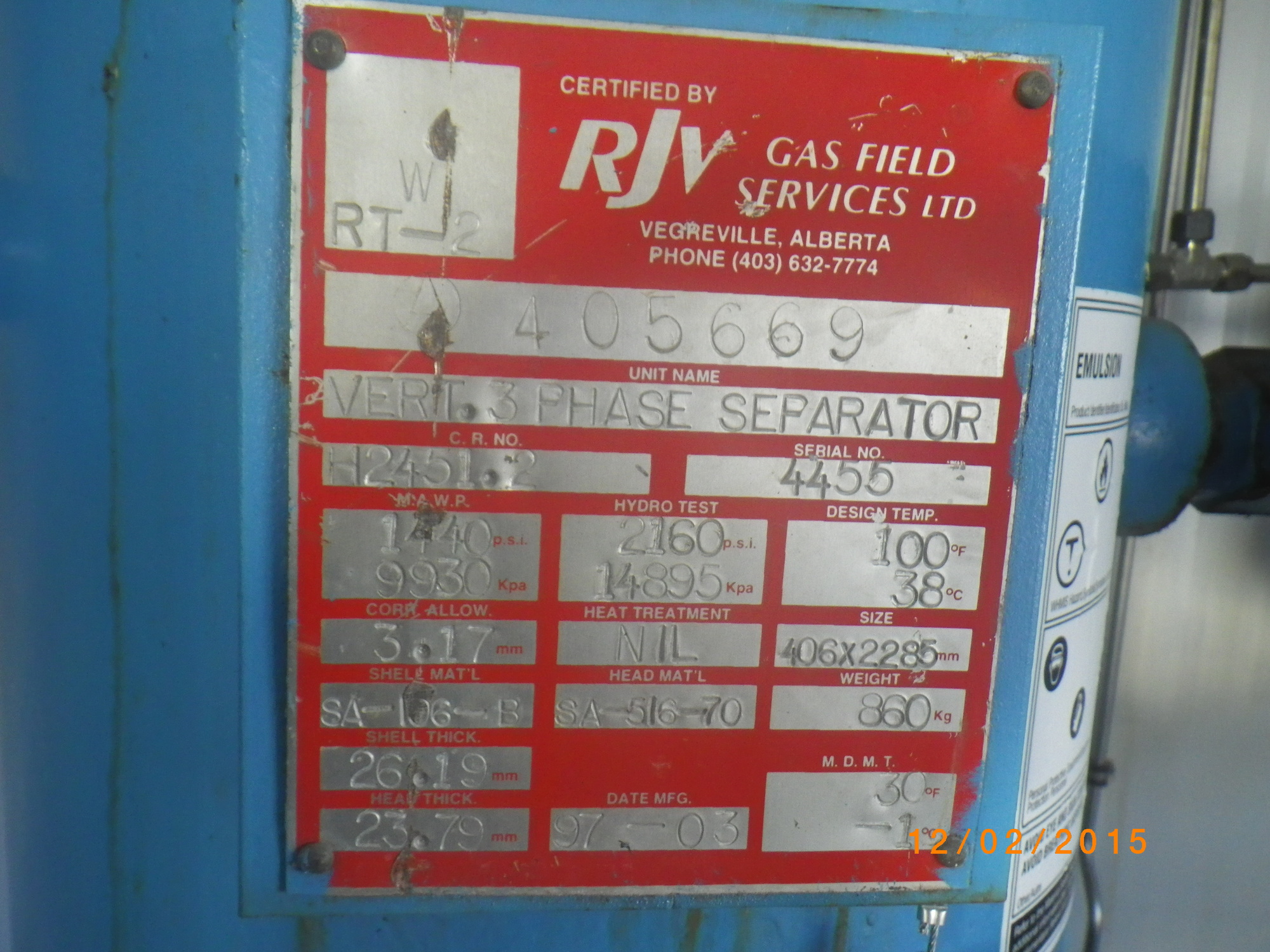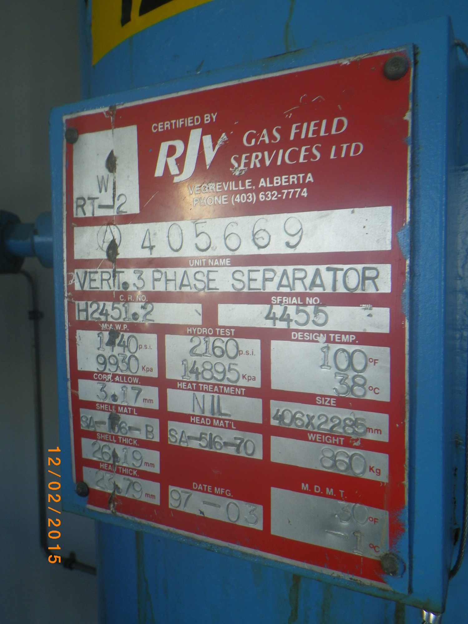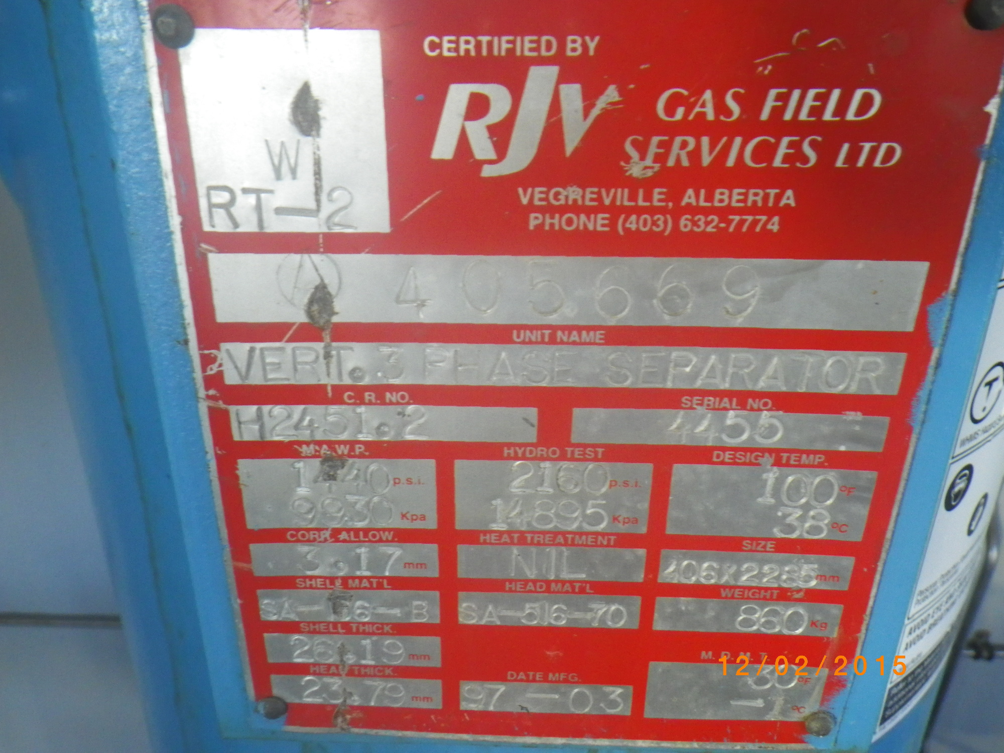 MAWP (PSI) 1440