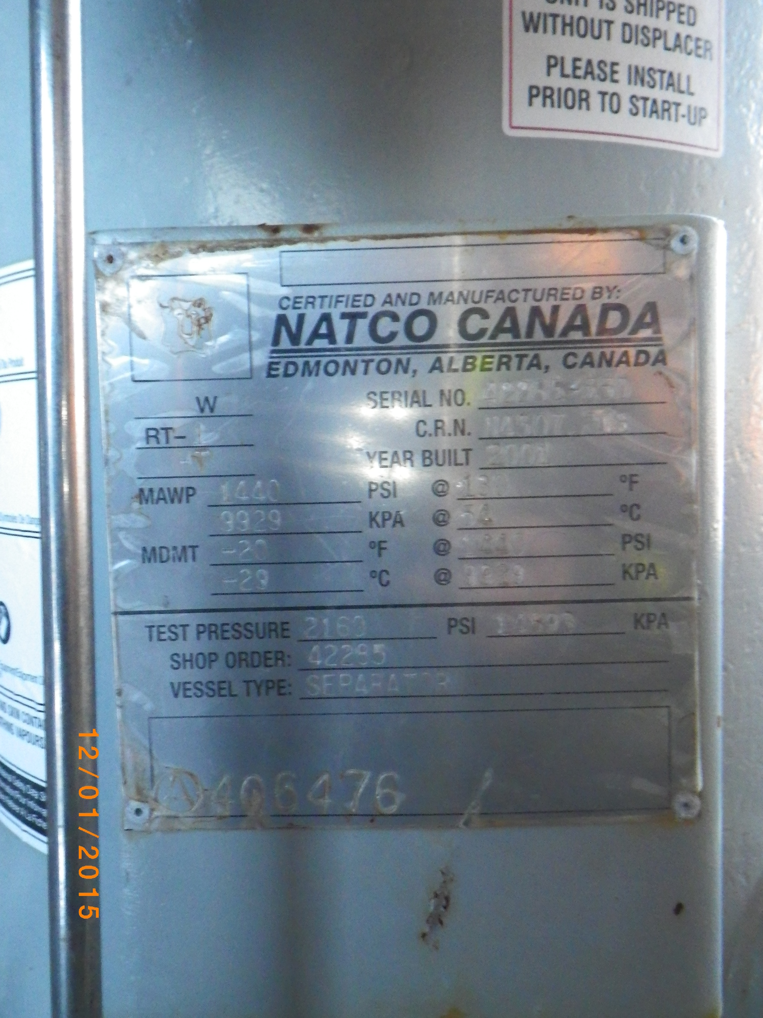 MAWP (PSI) 1440