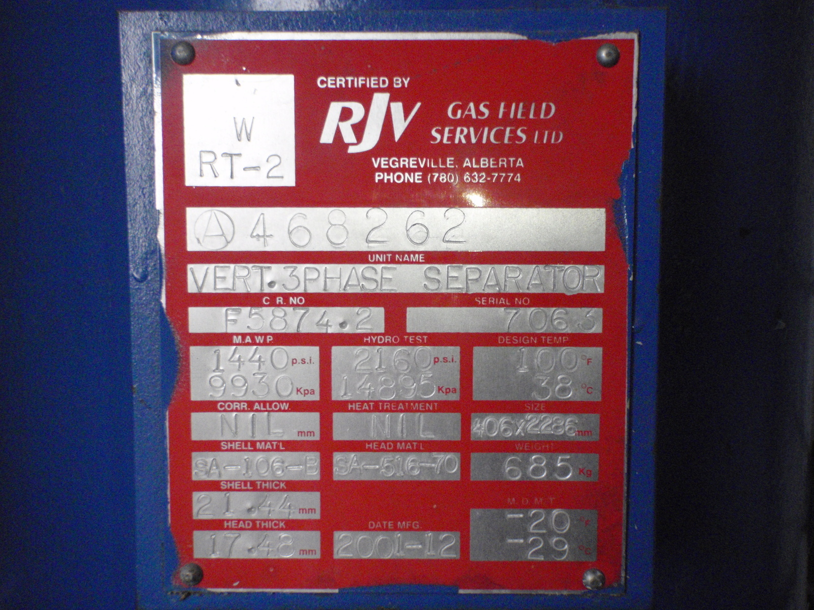 MAWP (PSI) 1440