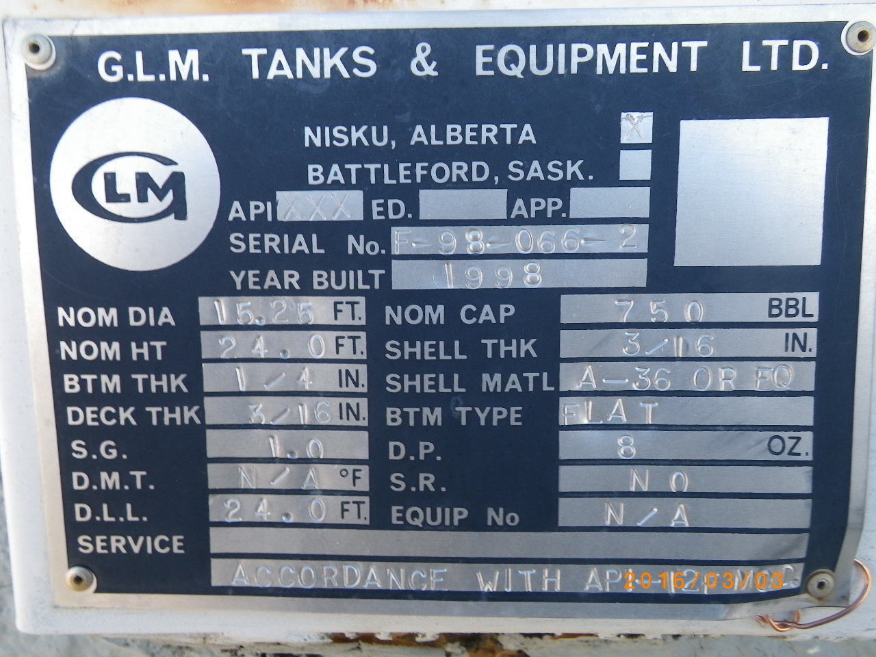 Tank Capacity (BBL) 750