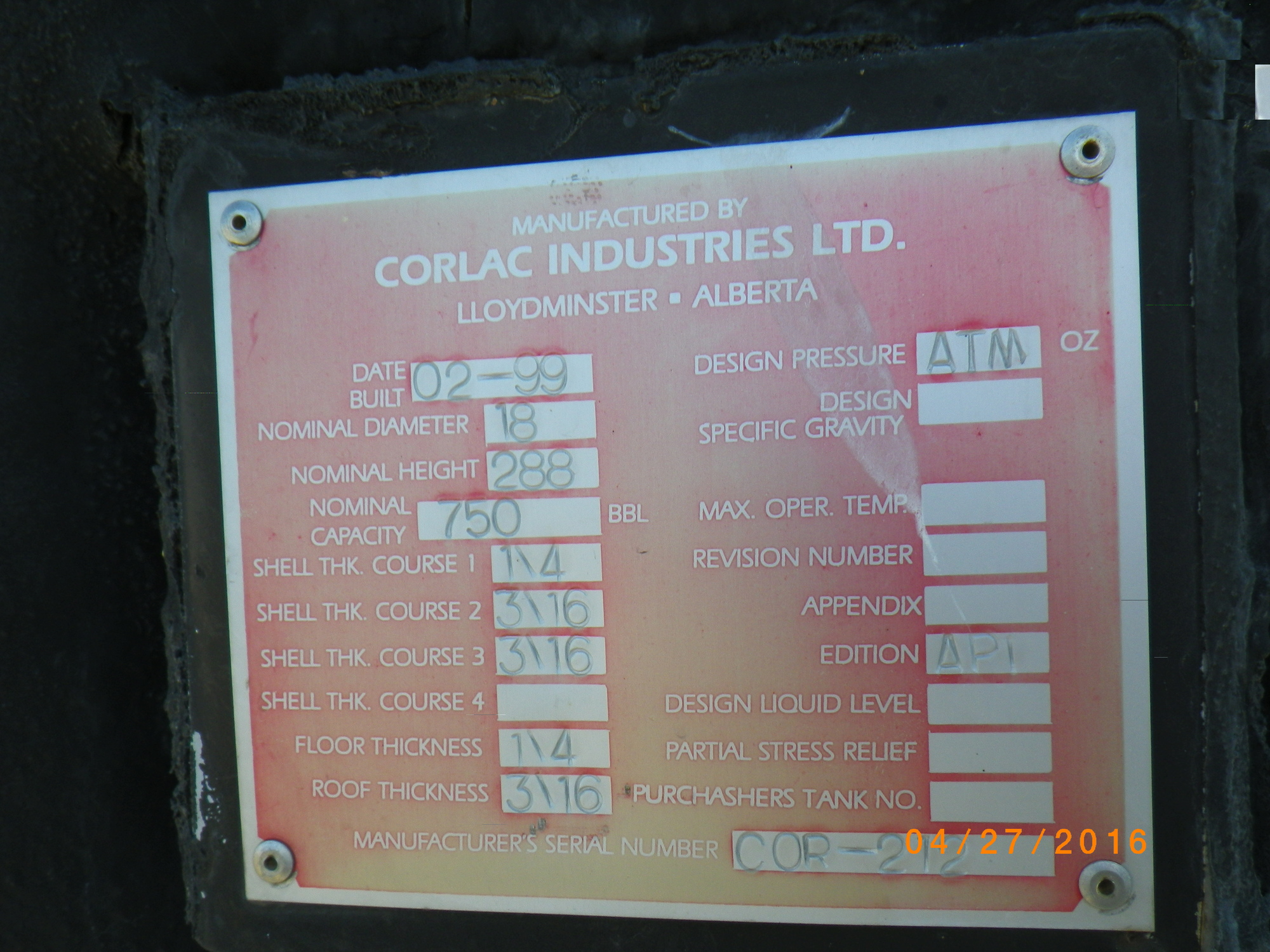 Tank Capacity (BBL) 750