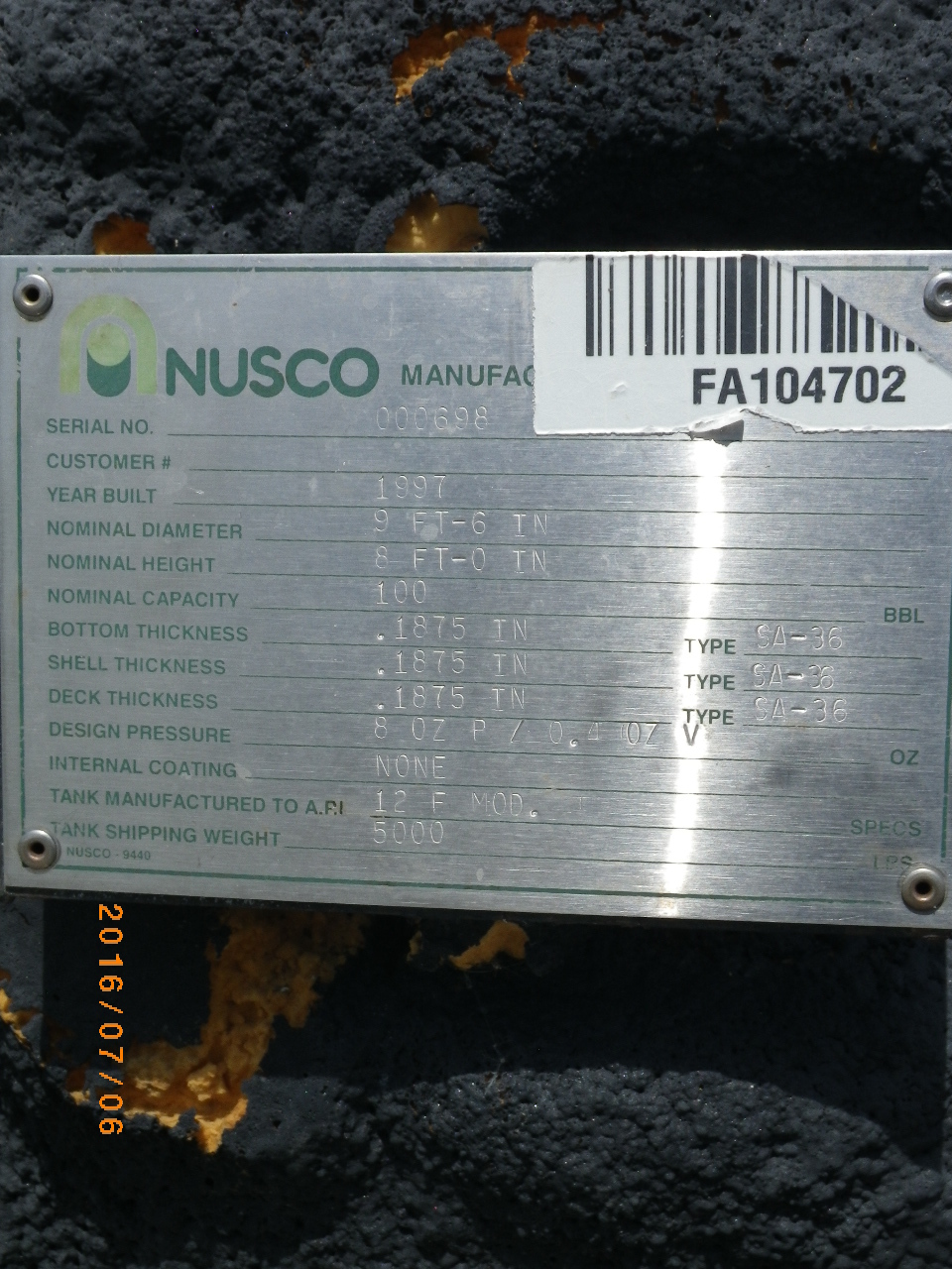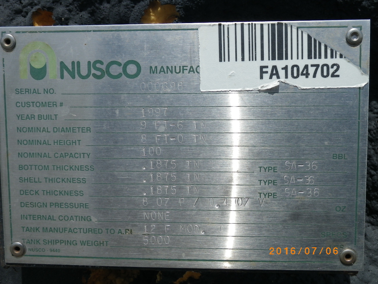 Tank Capacity (BBL) 100