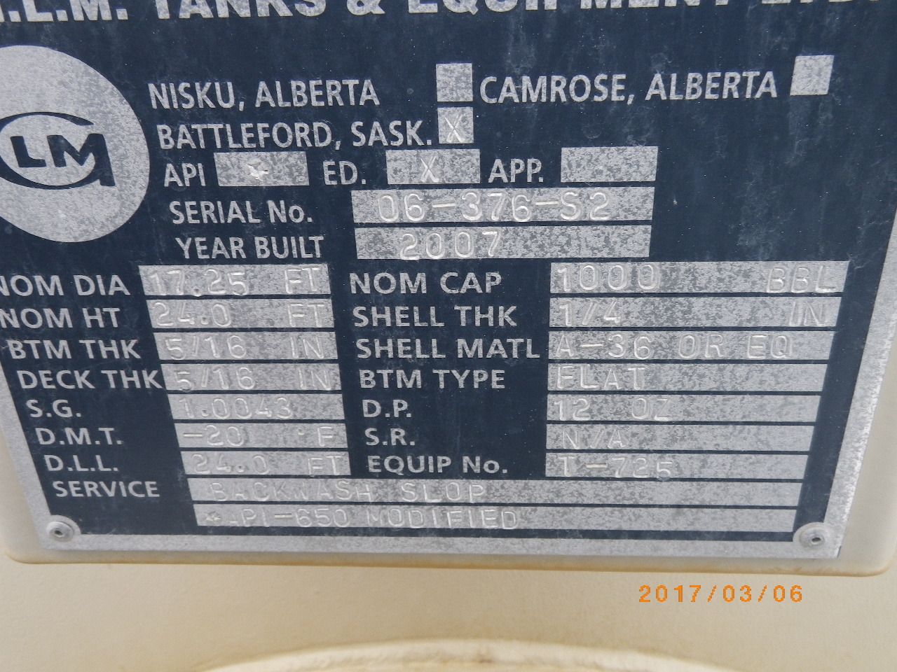 Tank Capacity (BBL) 1,000
