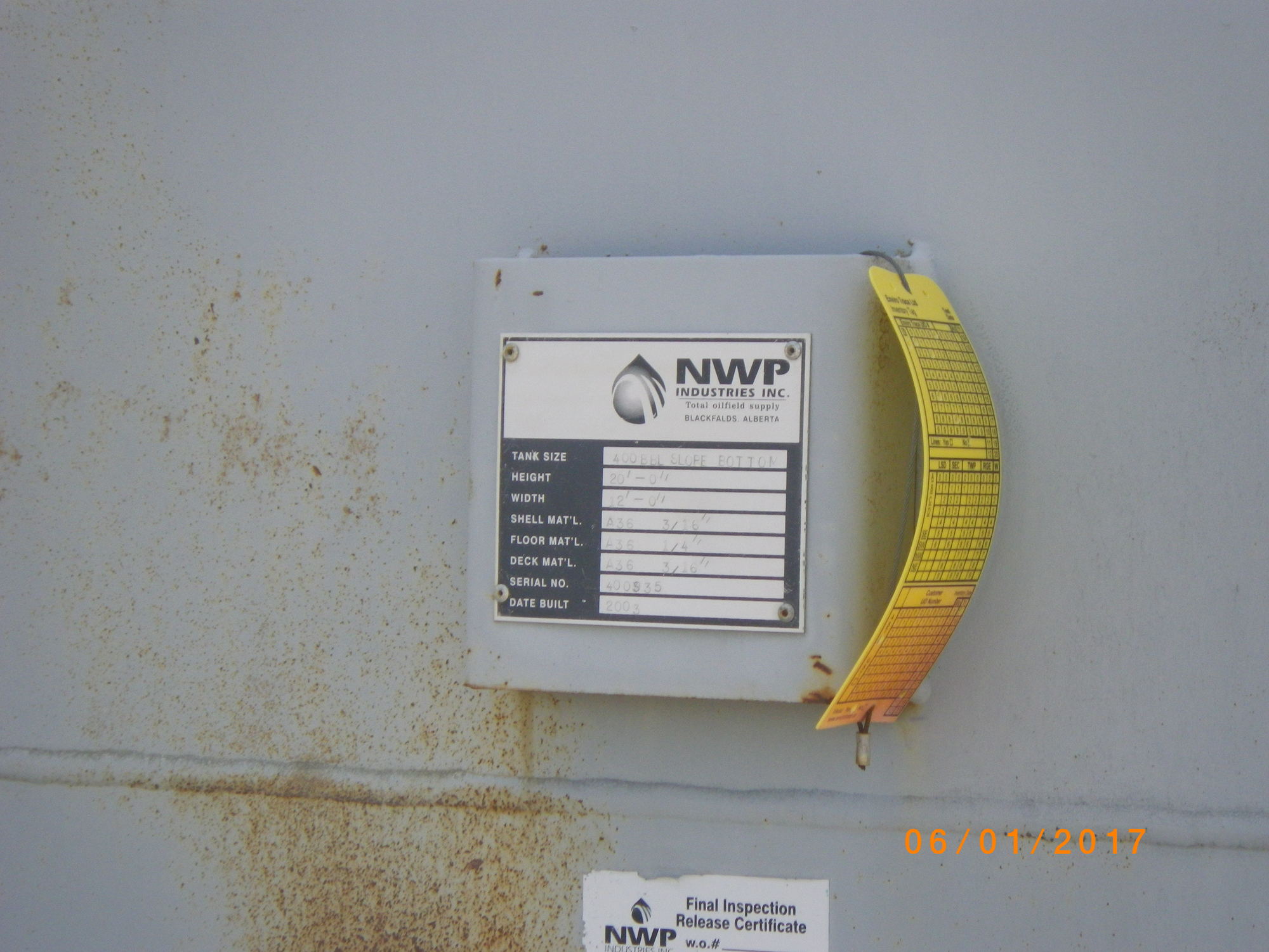 Tank Capacity (BBL) 400