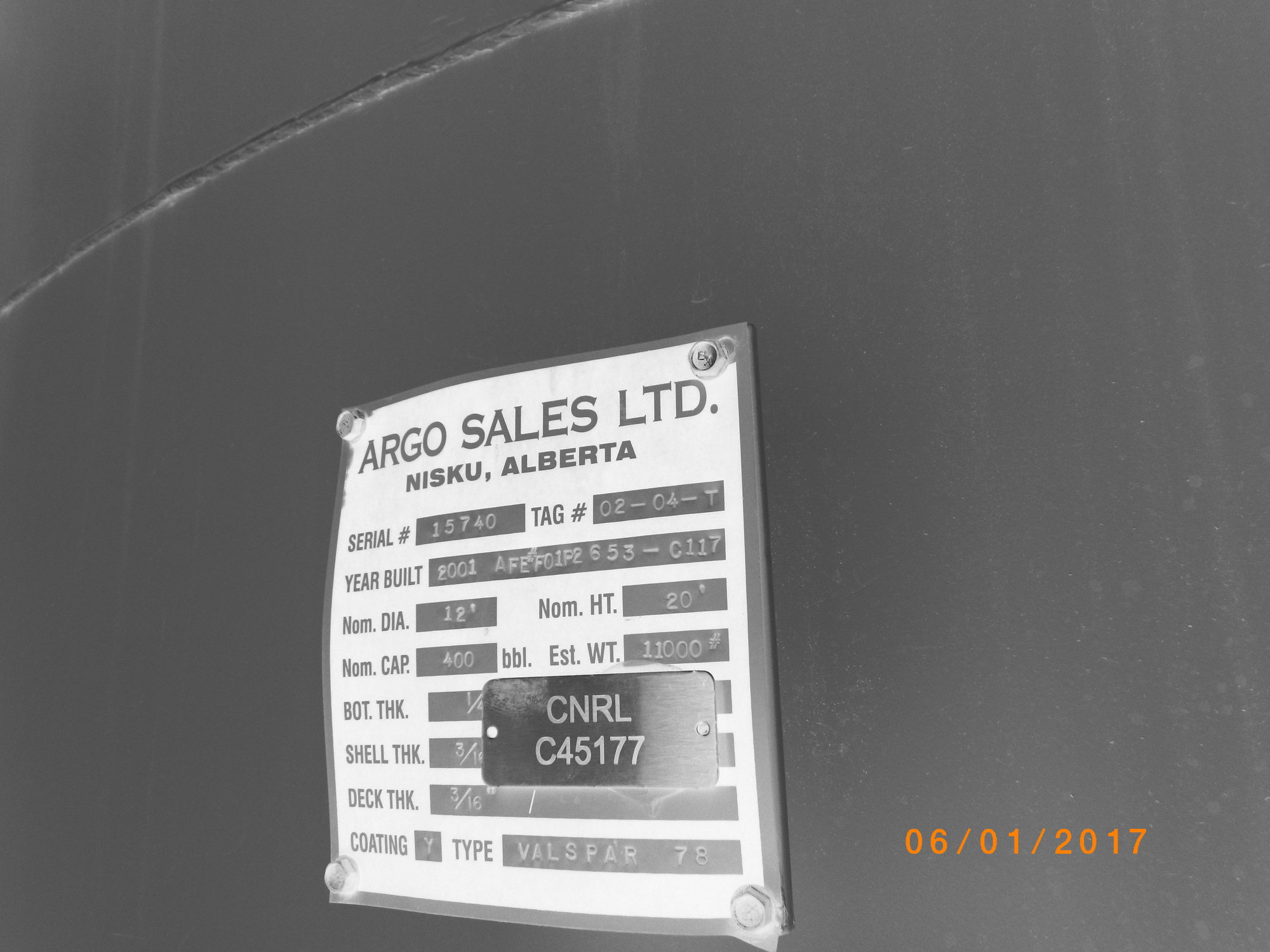 CNRL#: C45177; MFG: ARGO; BUILT: 2001; SER#: 15740