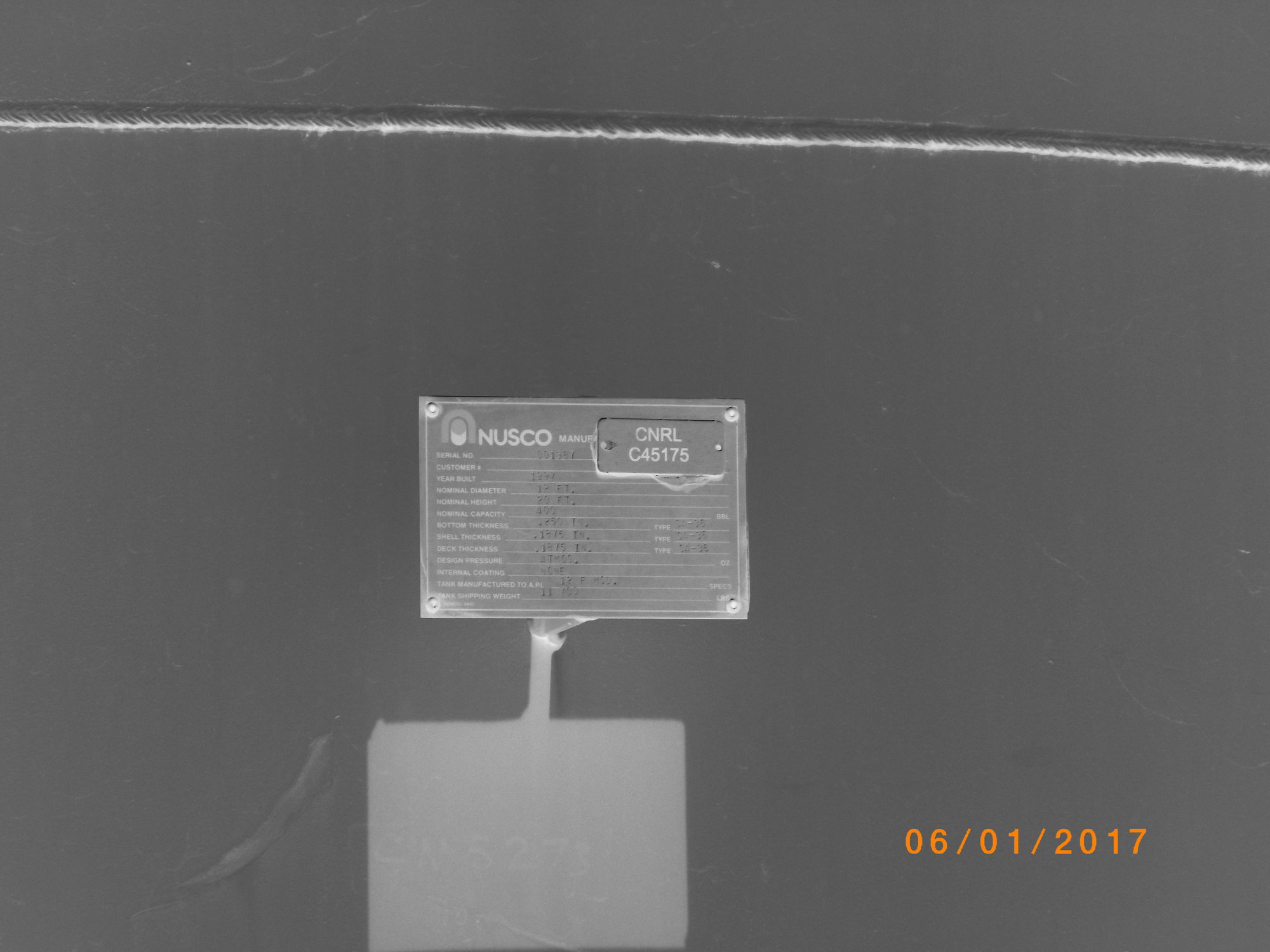 CNRL#: C45175; MFG: NUSCO; BUILT: 1997; SER#: 001387