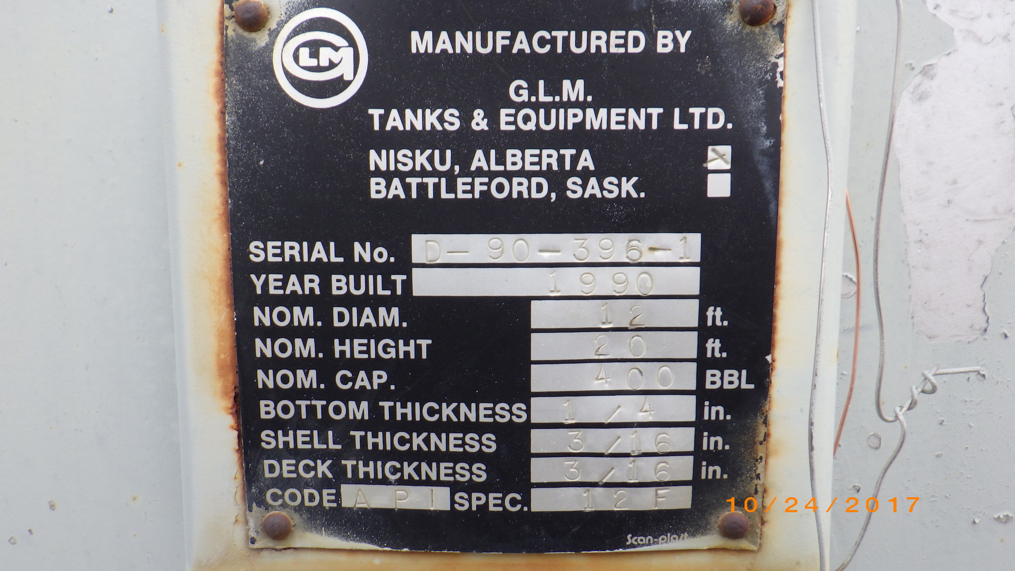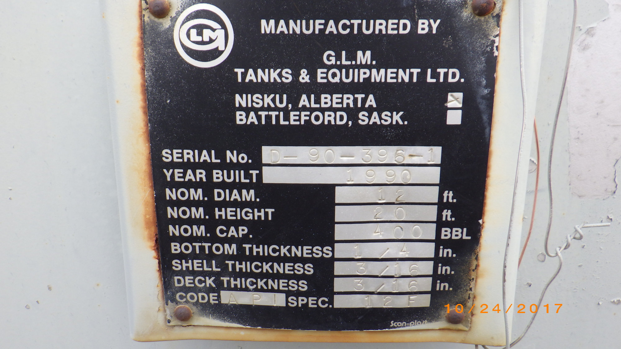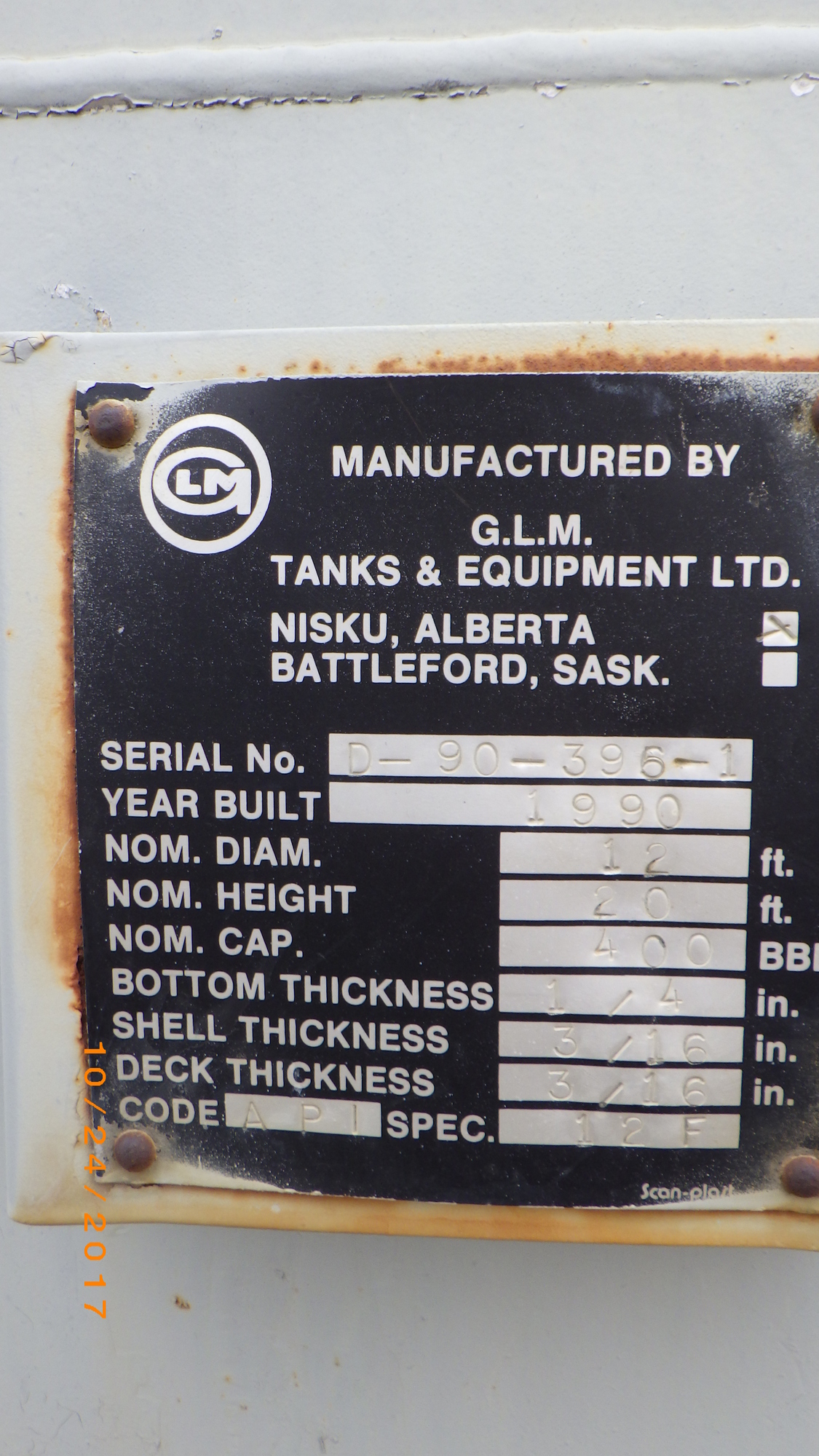 Manufacturer G.L.M. Tanks & Equipment Ltd.