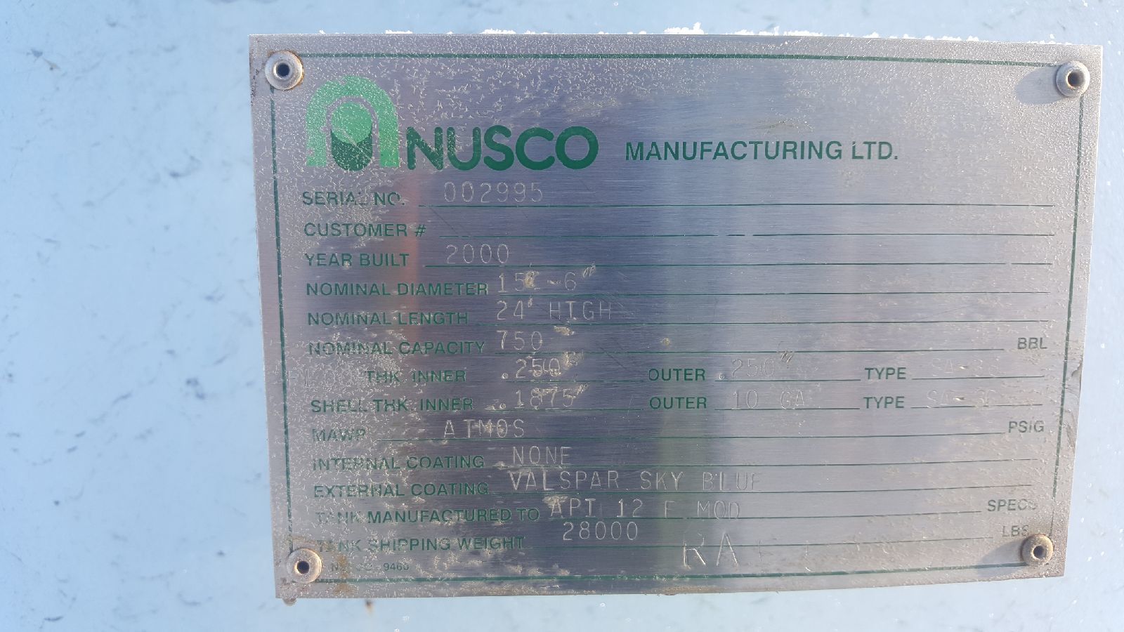 Tank Capacity (BBL) 750