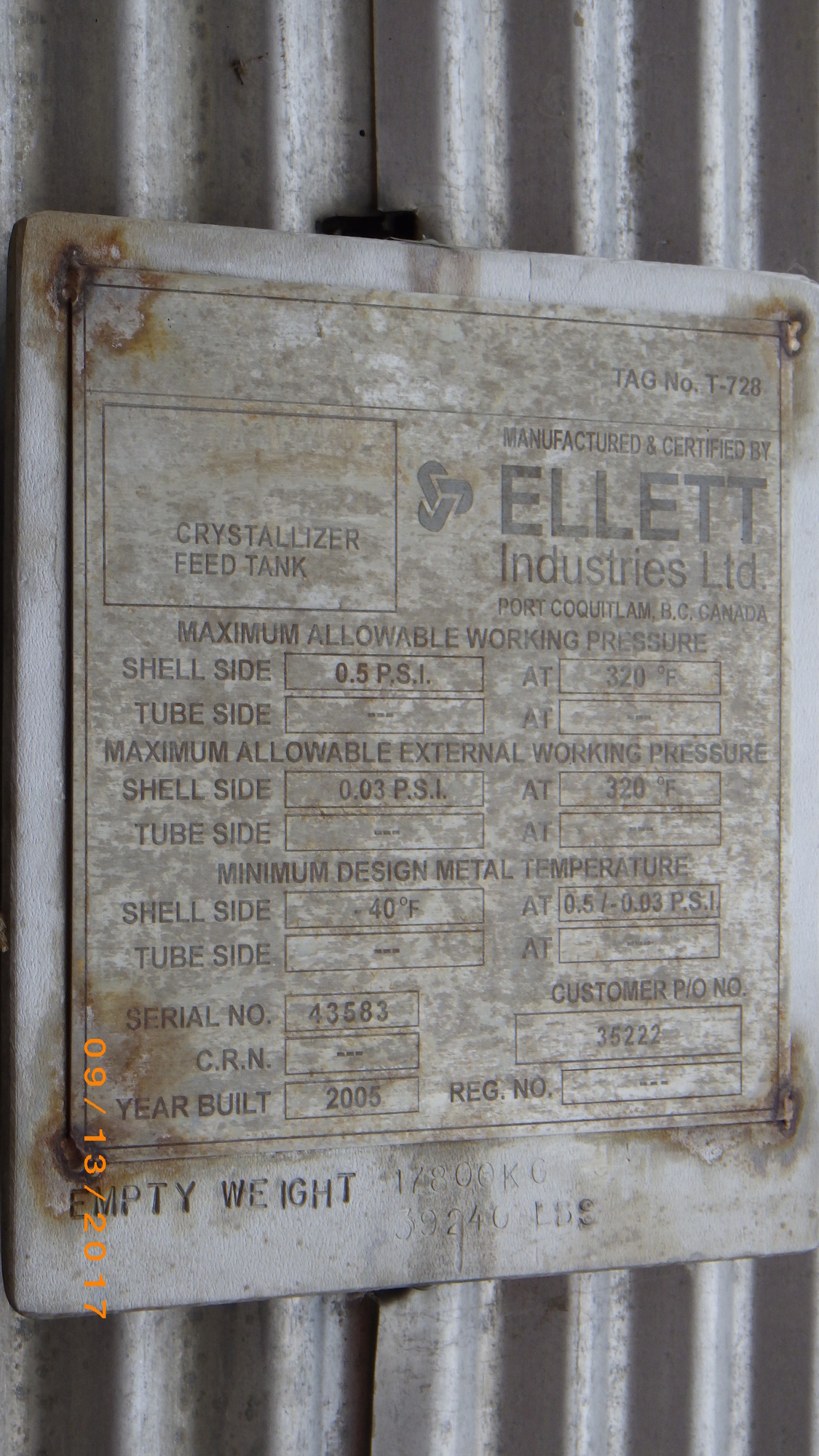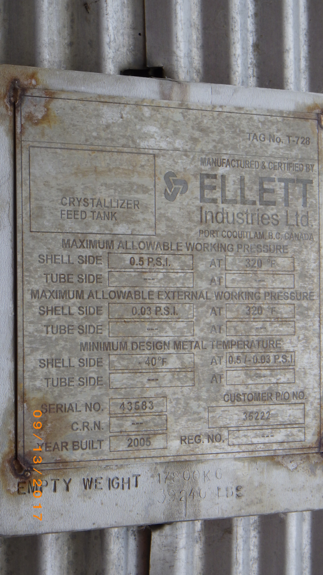 TANK - CRYSTALLIZER FEED TANK
