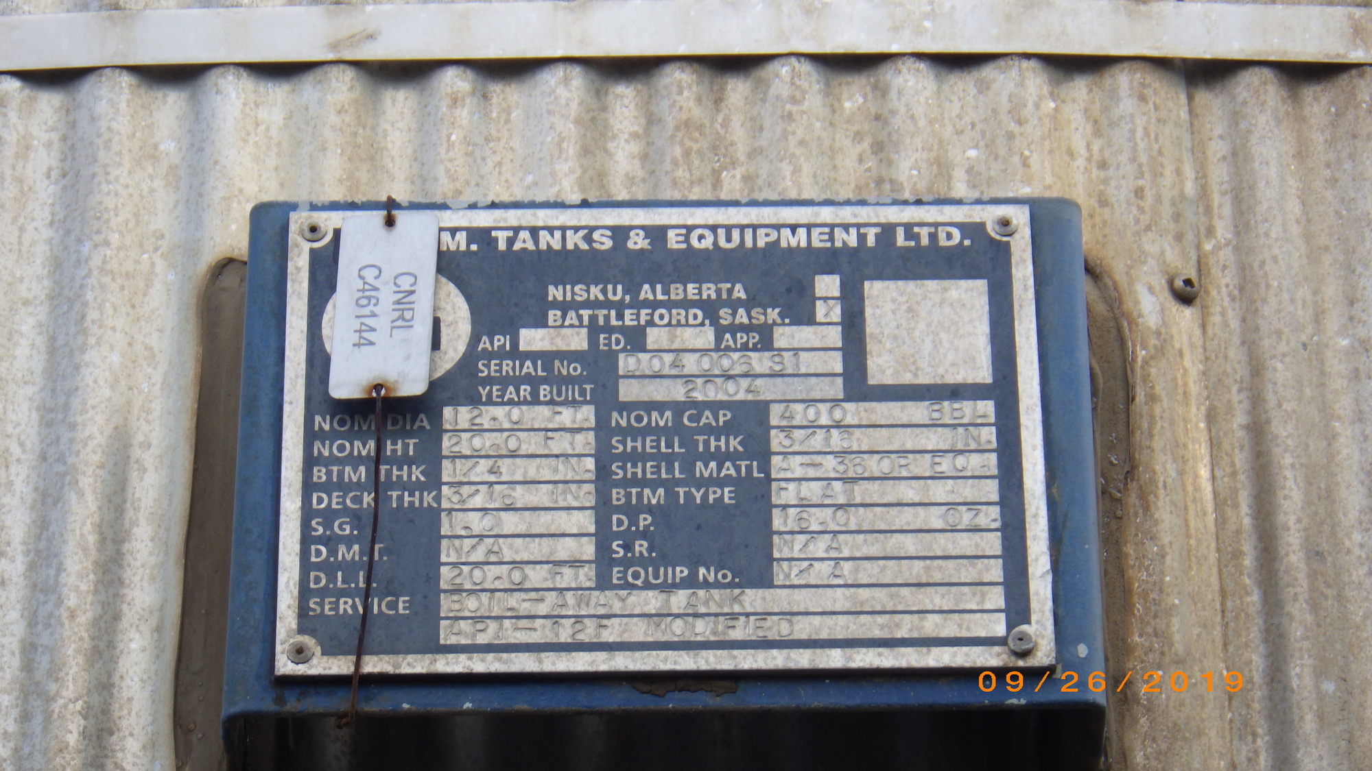 Tank Capacity (BBL) 400