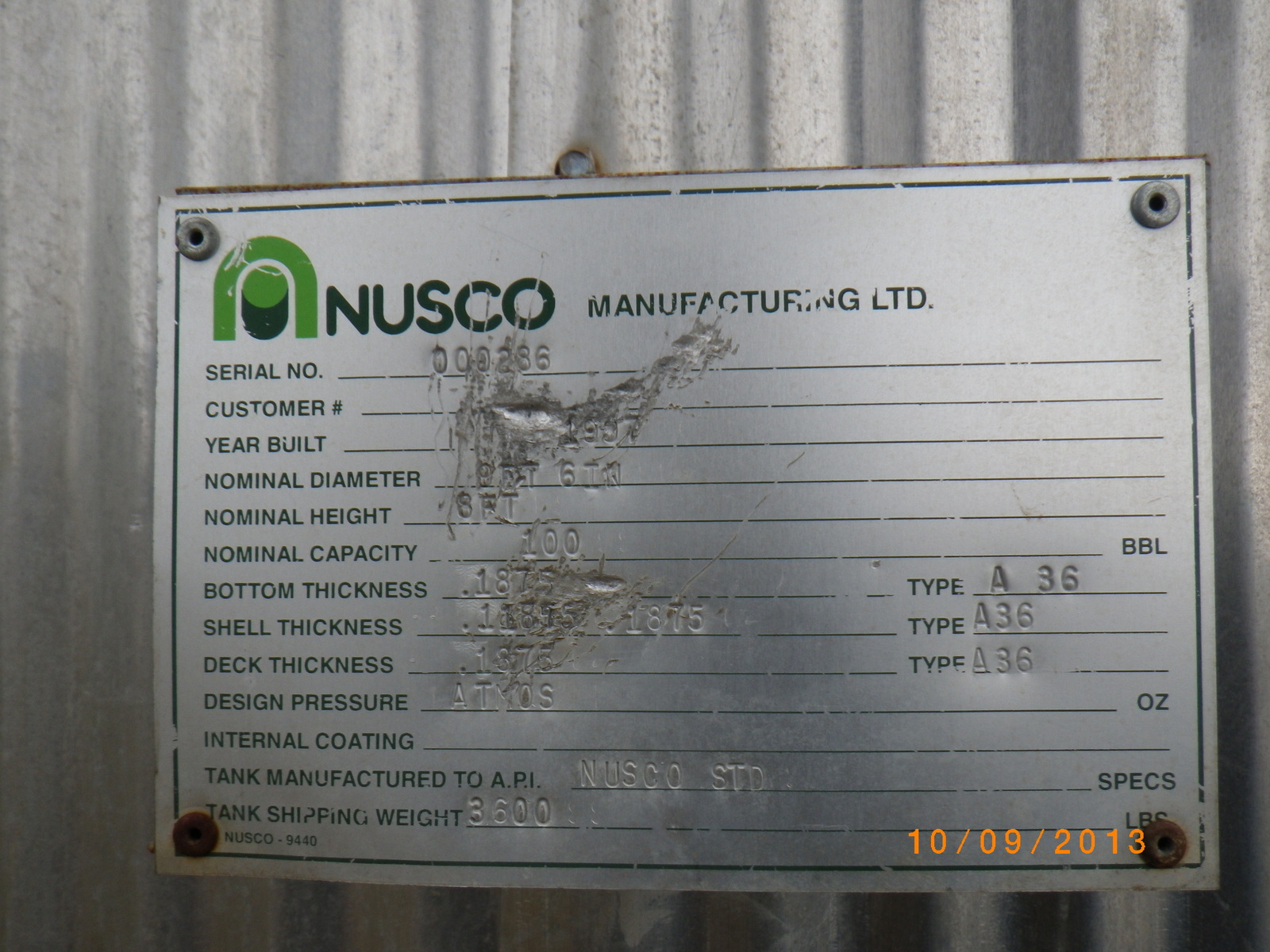 Tank Capacity (BBL) 100