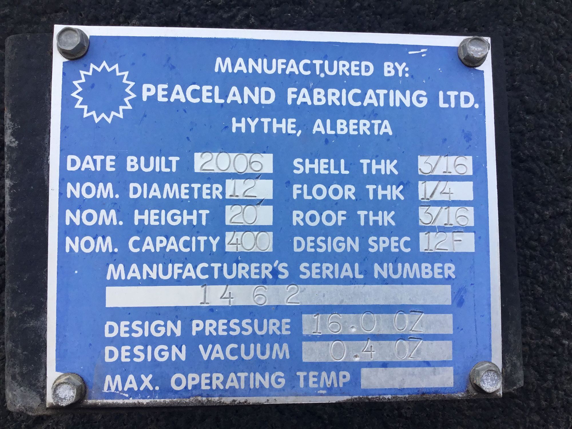 Tank Capacity (BBL) 400