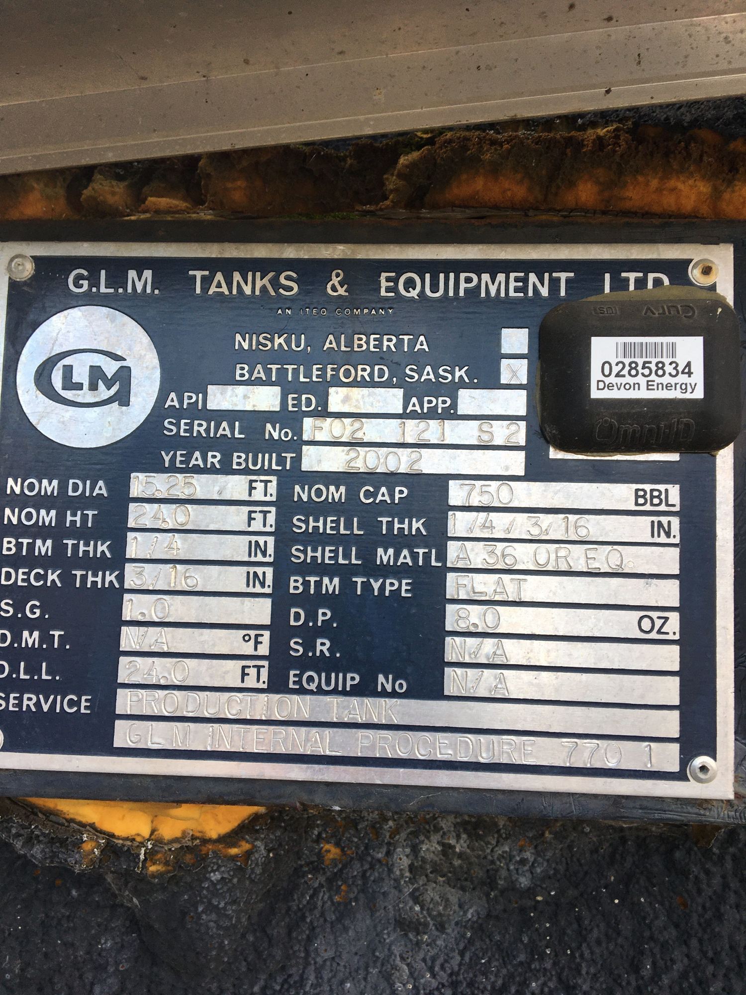 Tank Capacity (BBL) 750
