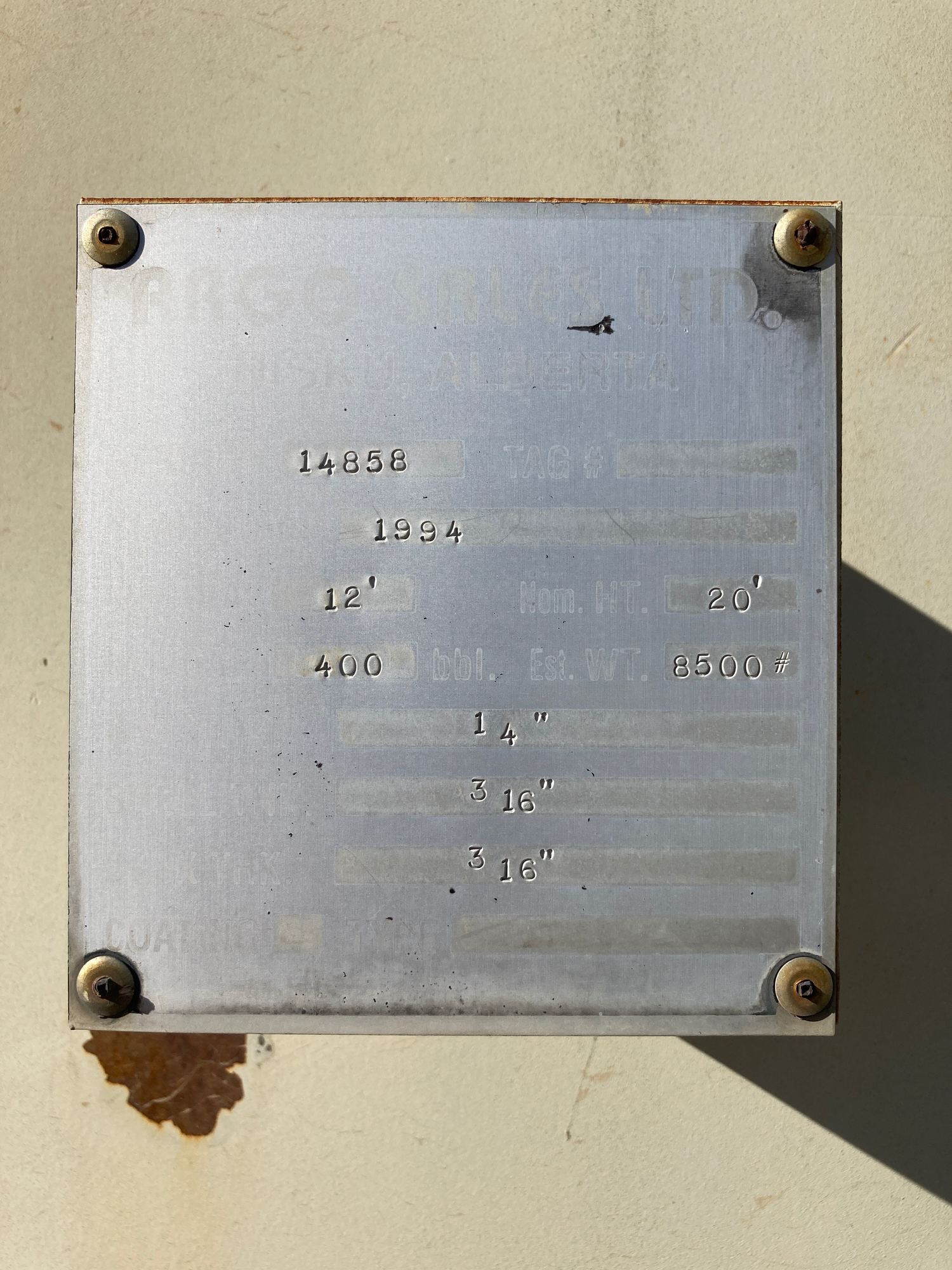 Tank Capacity (BBL) 400