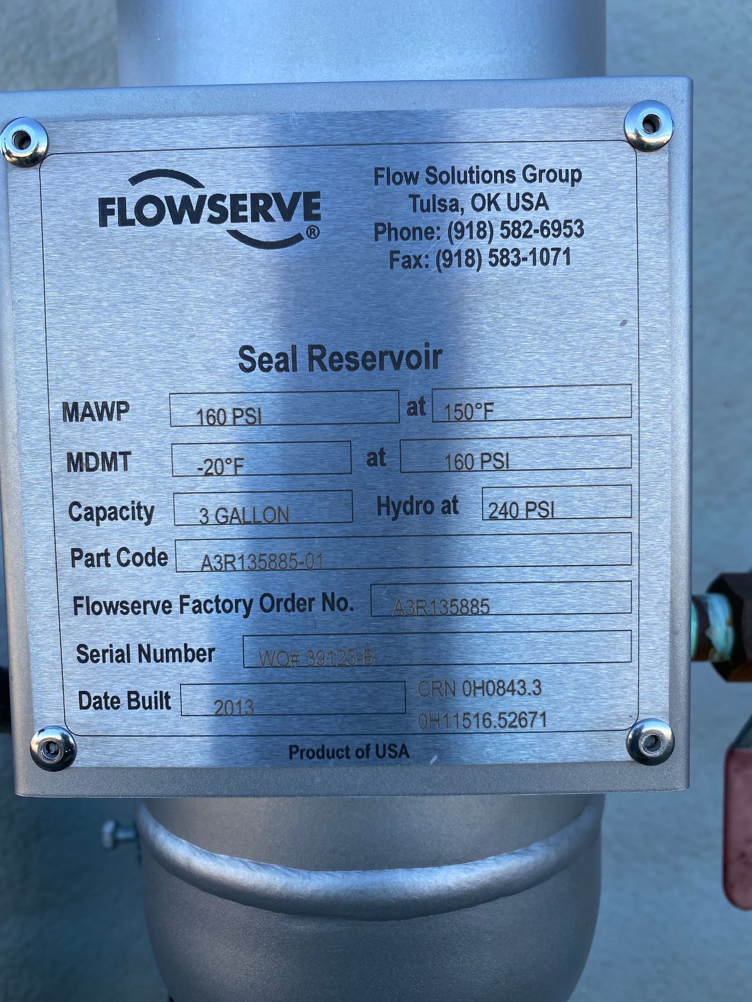 MAWP: 160 PSI at 150°F
