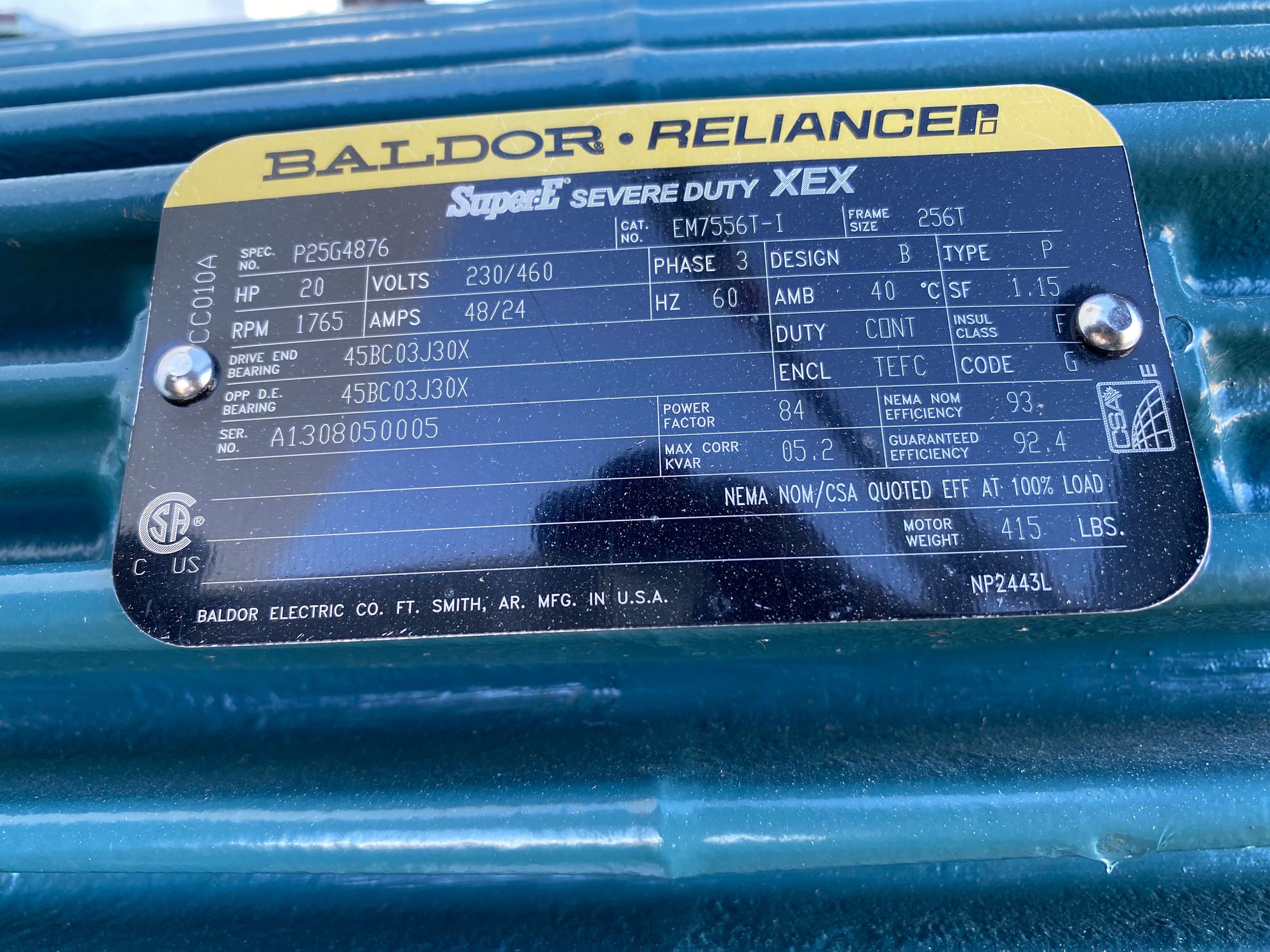 Baldor Electric Motor Tag*