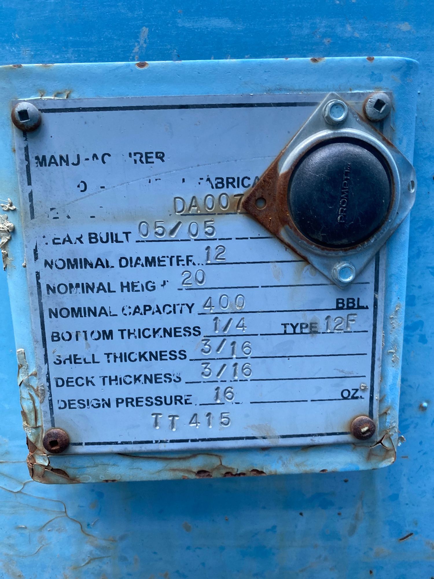 Capacity: 400 BBL