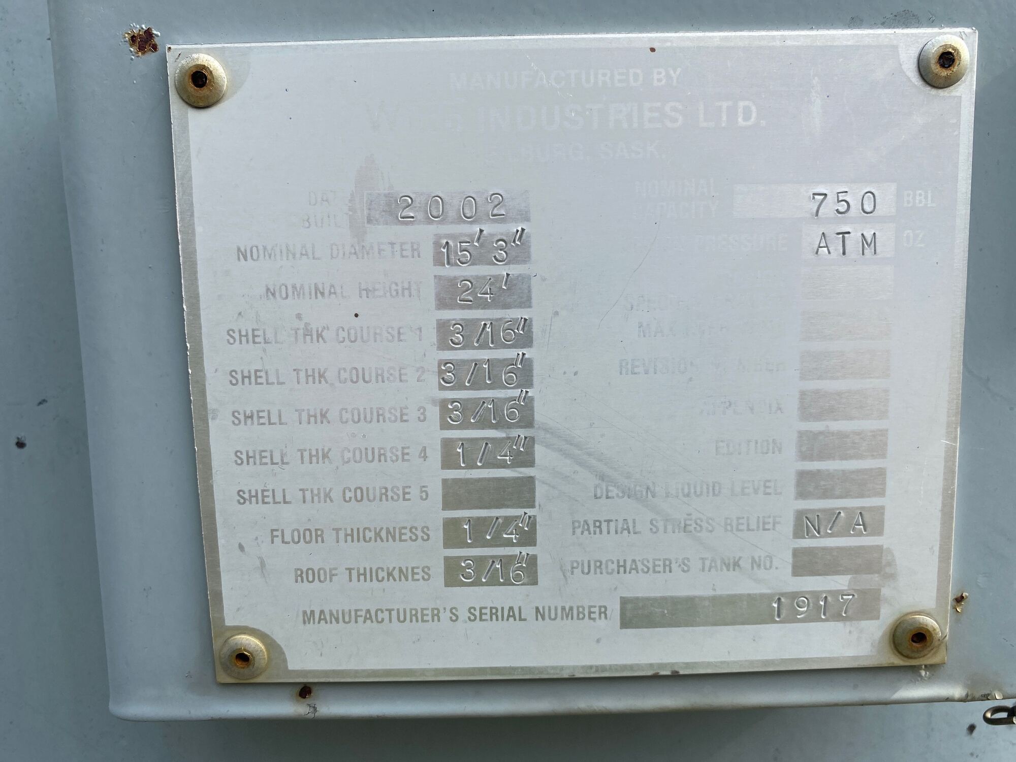 Tank Capacity (BBL) 750
