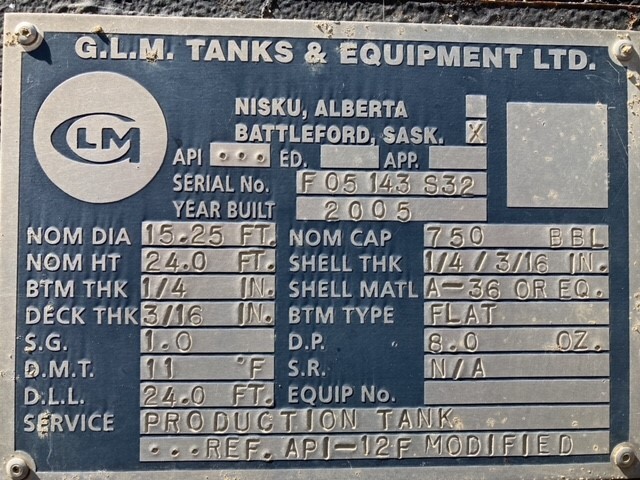 Tank Capacity (BBL) 750