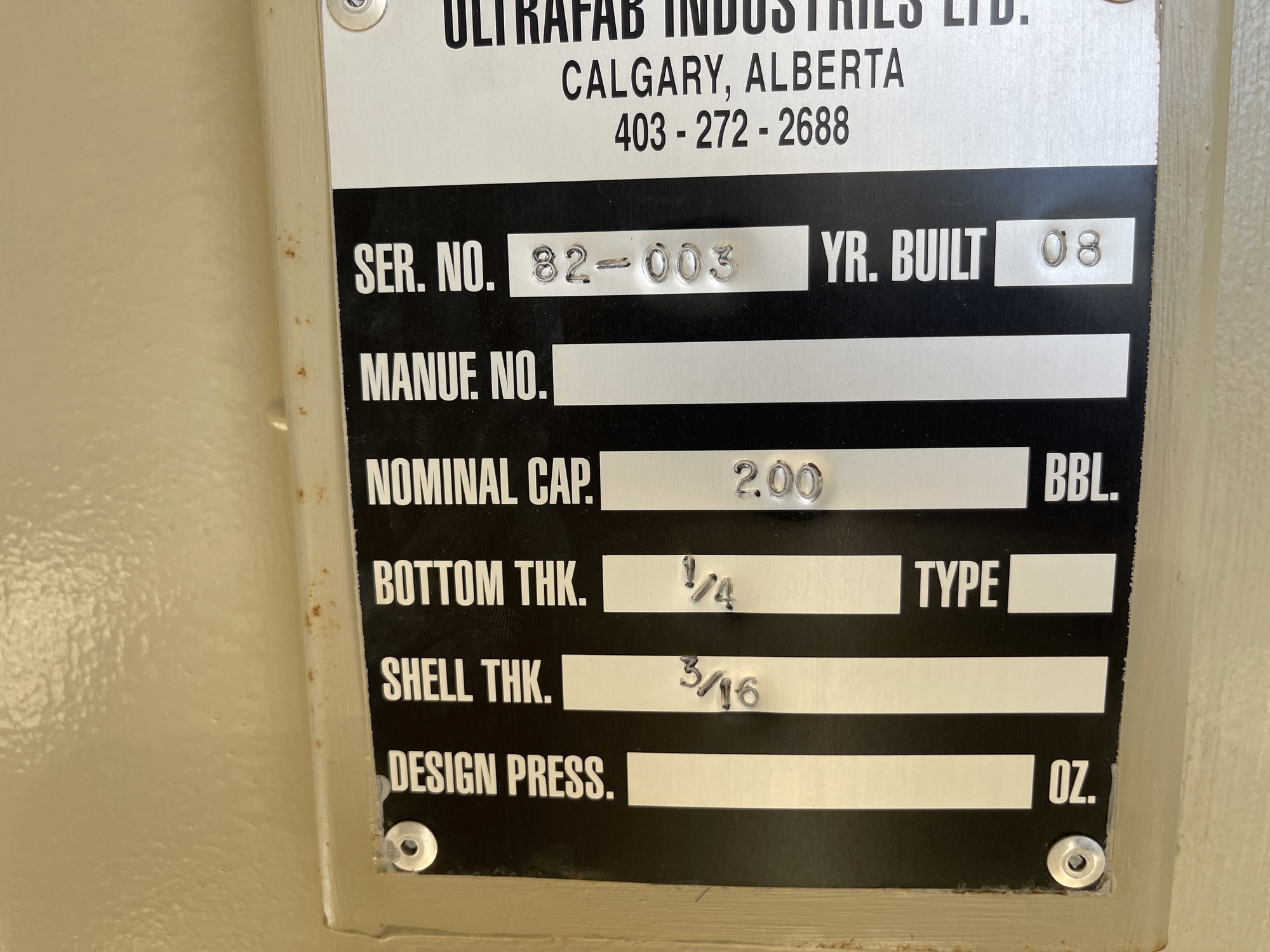 Tank Capacity (BBL) 200