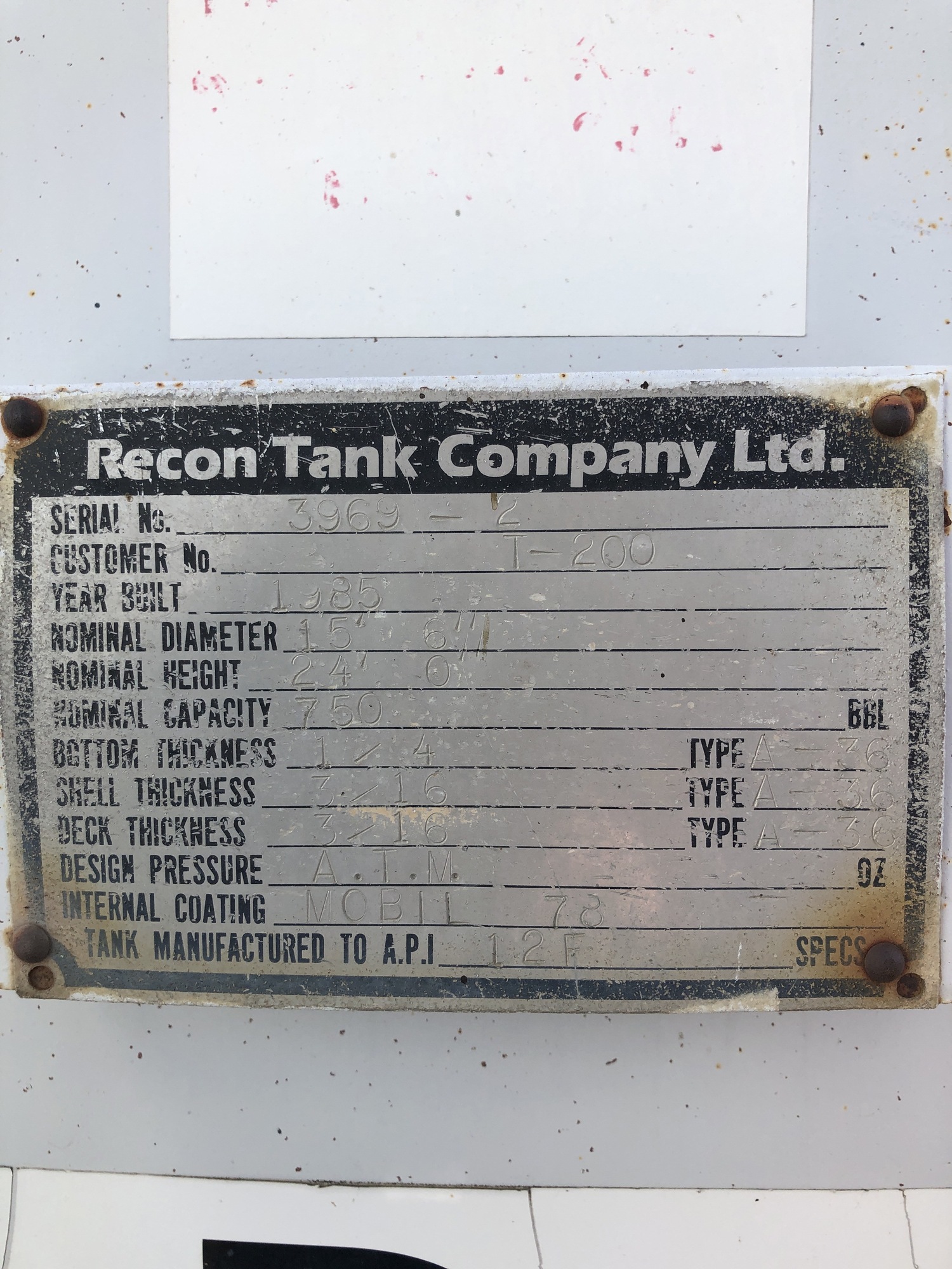 INTERNAL COATING: MOBIL 78