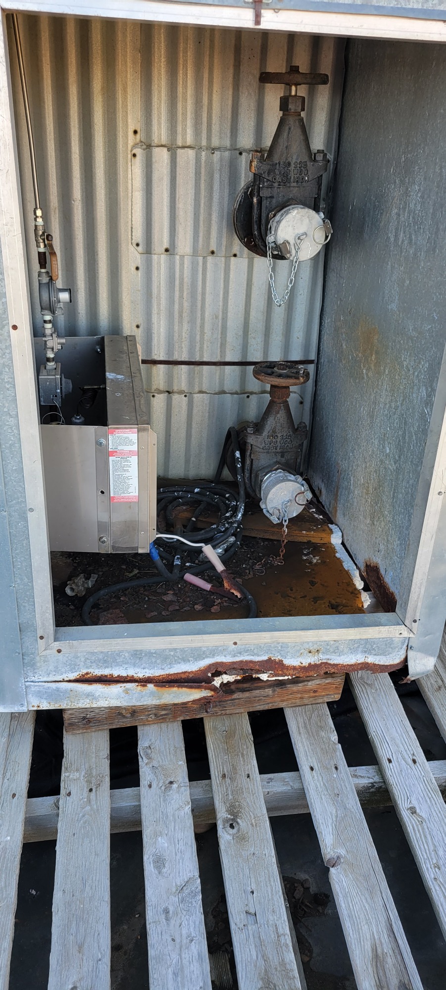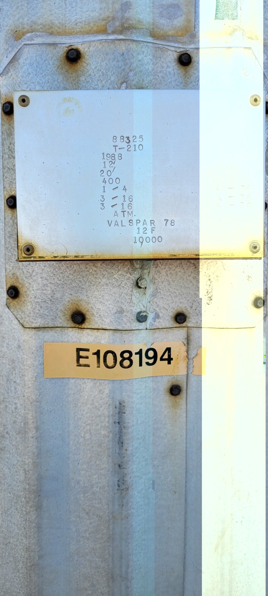1988 400 bbl skidded tank. c/w metal clad insulation, firetube, sour service Valspar 78 internal coating.