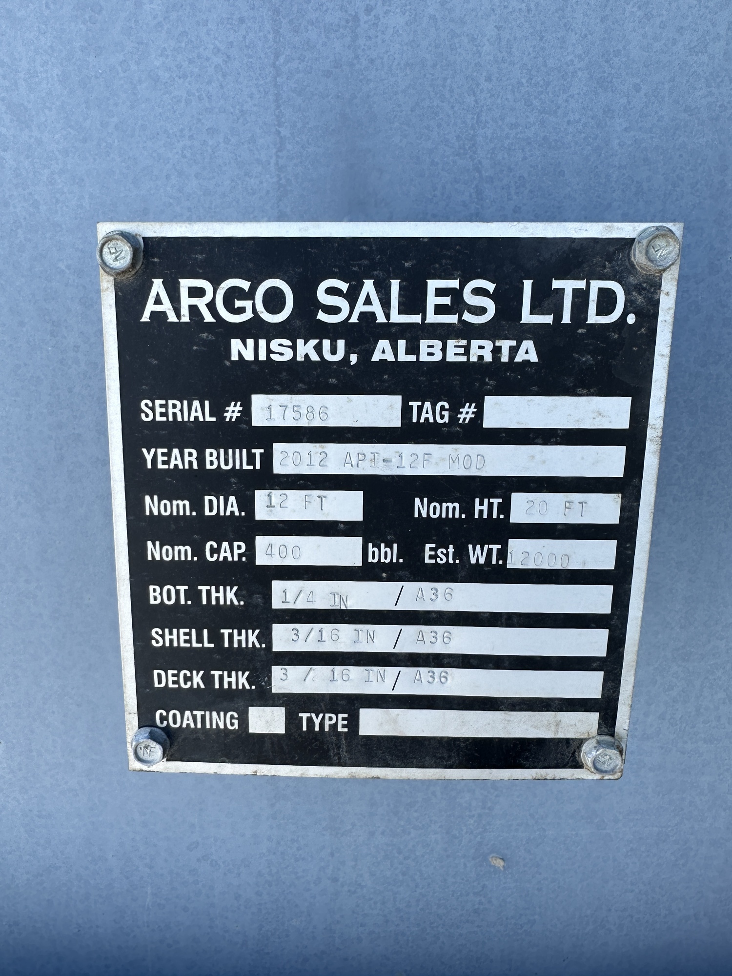 Tank Capacity (BBL) 400