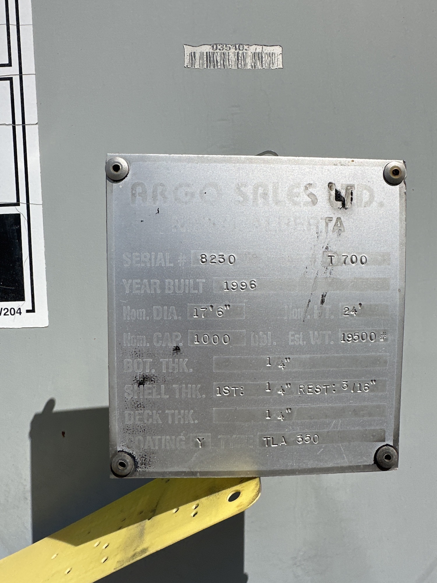 1000 BBL Coated Storage Tank