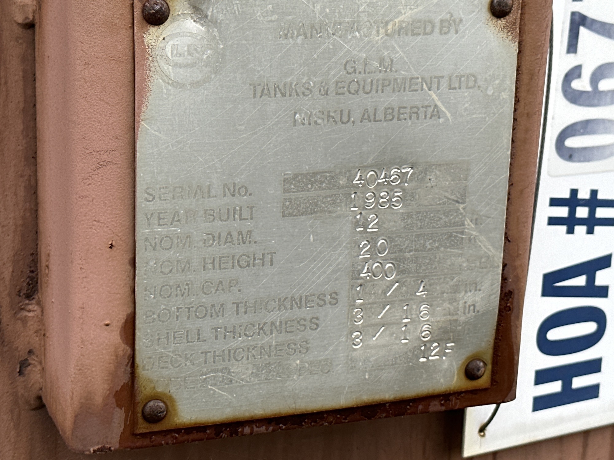 Tank Capacity (BBL) 400