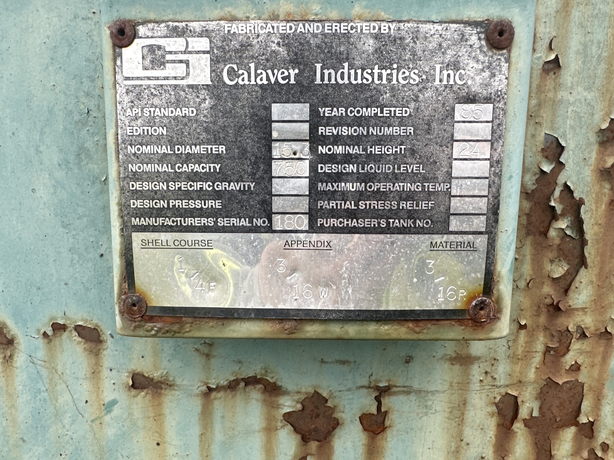 Tank Capacity (BBL) 750