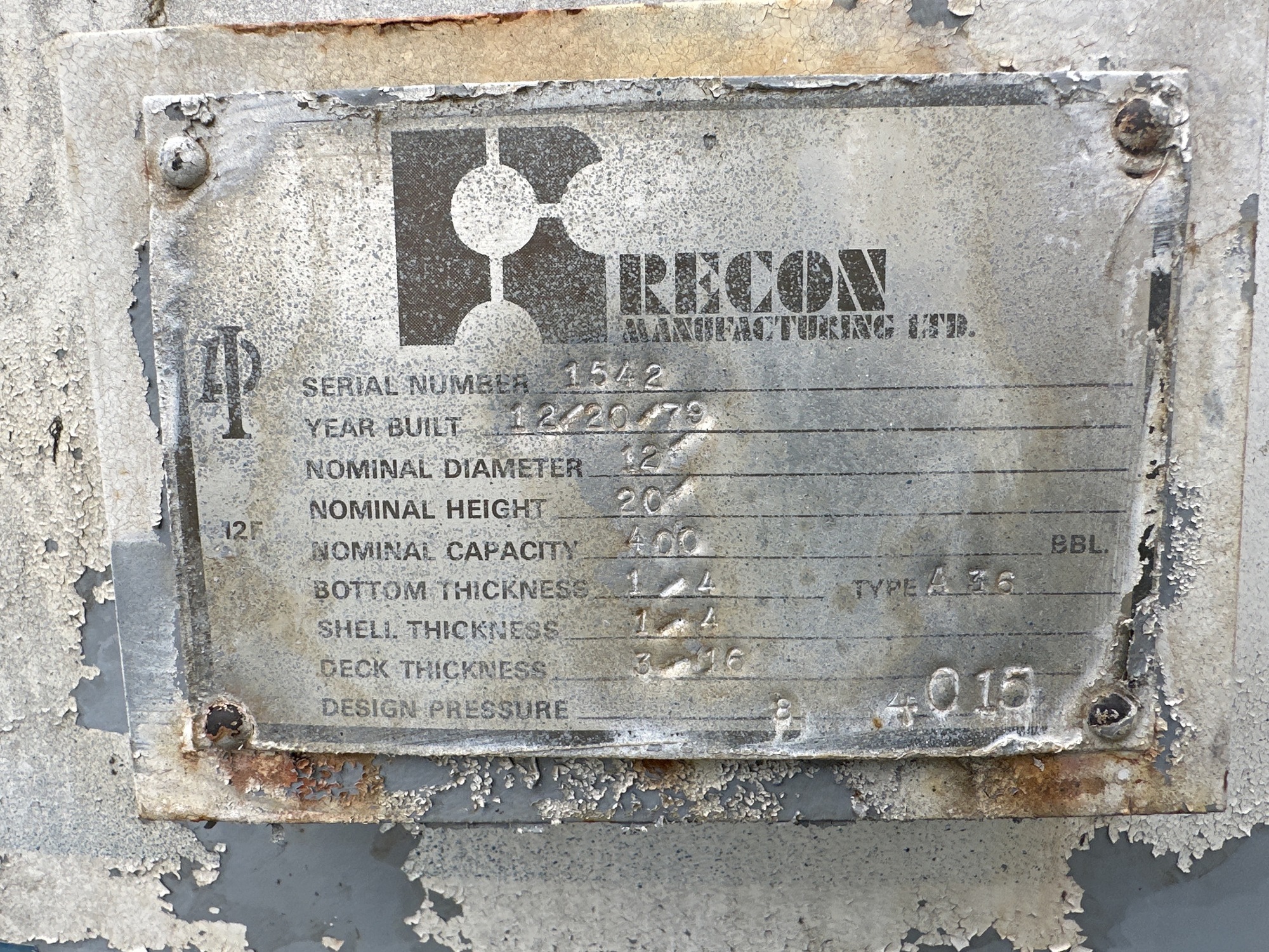 Capacity: 400 BBL