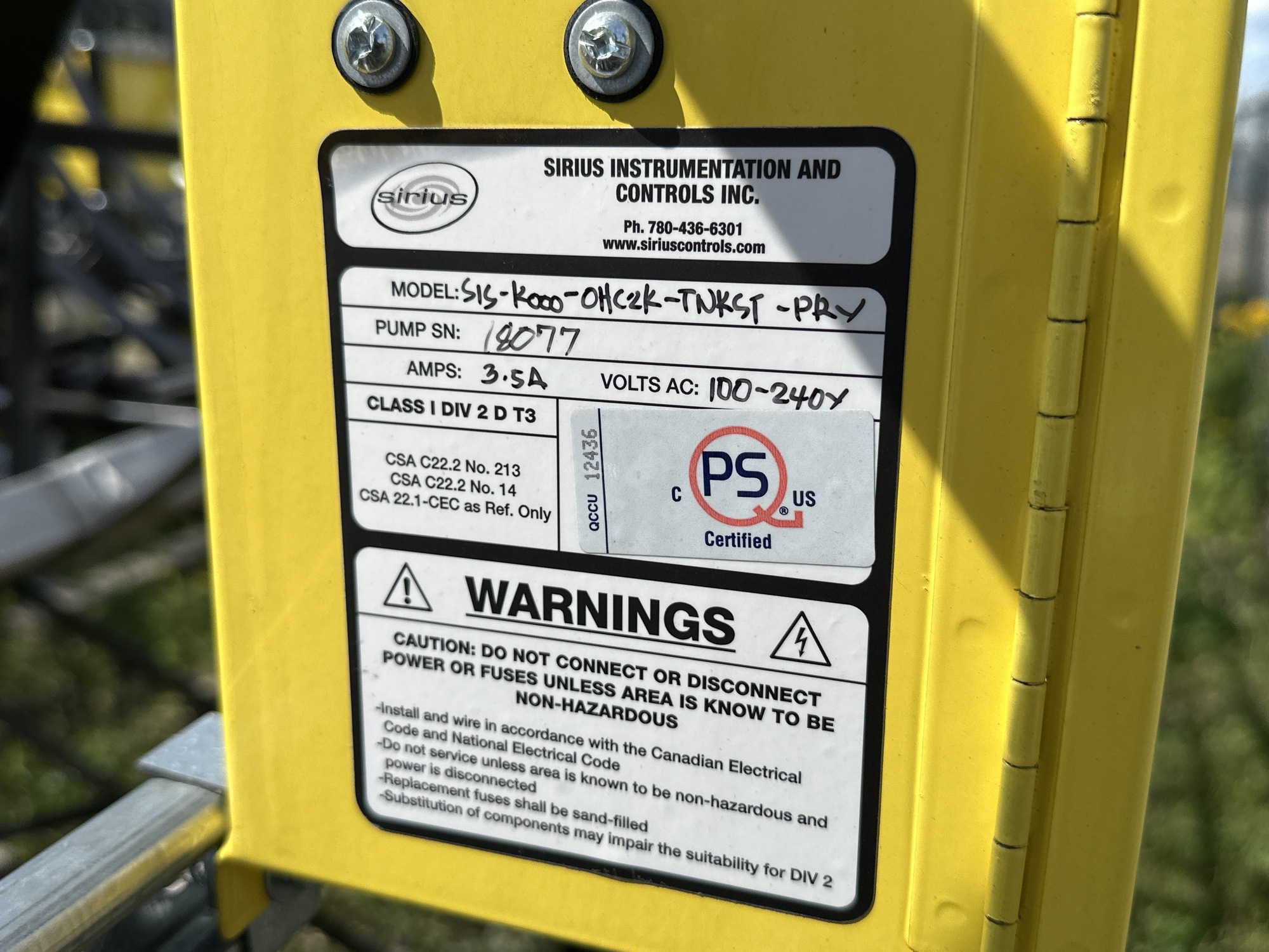 Manufacturer: Sirius Instrumentation& Controls Inc.