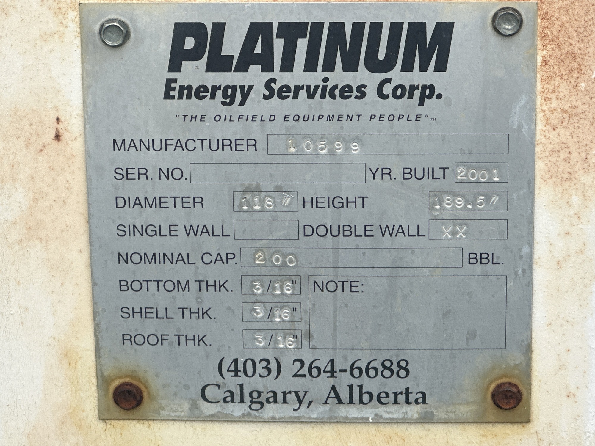 Tank Capacity (BBL) 200