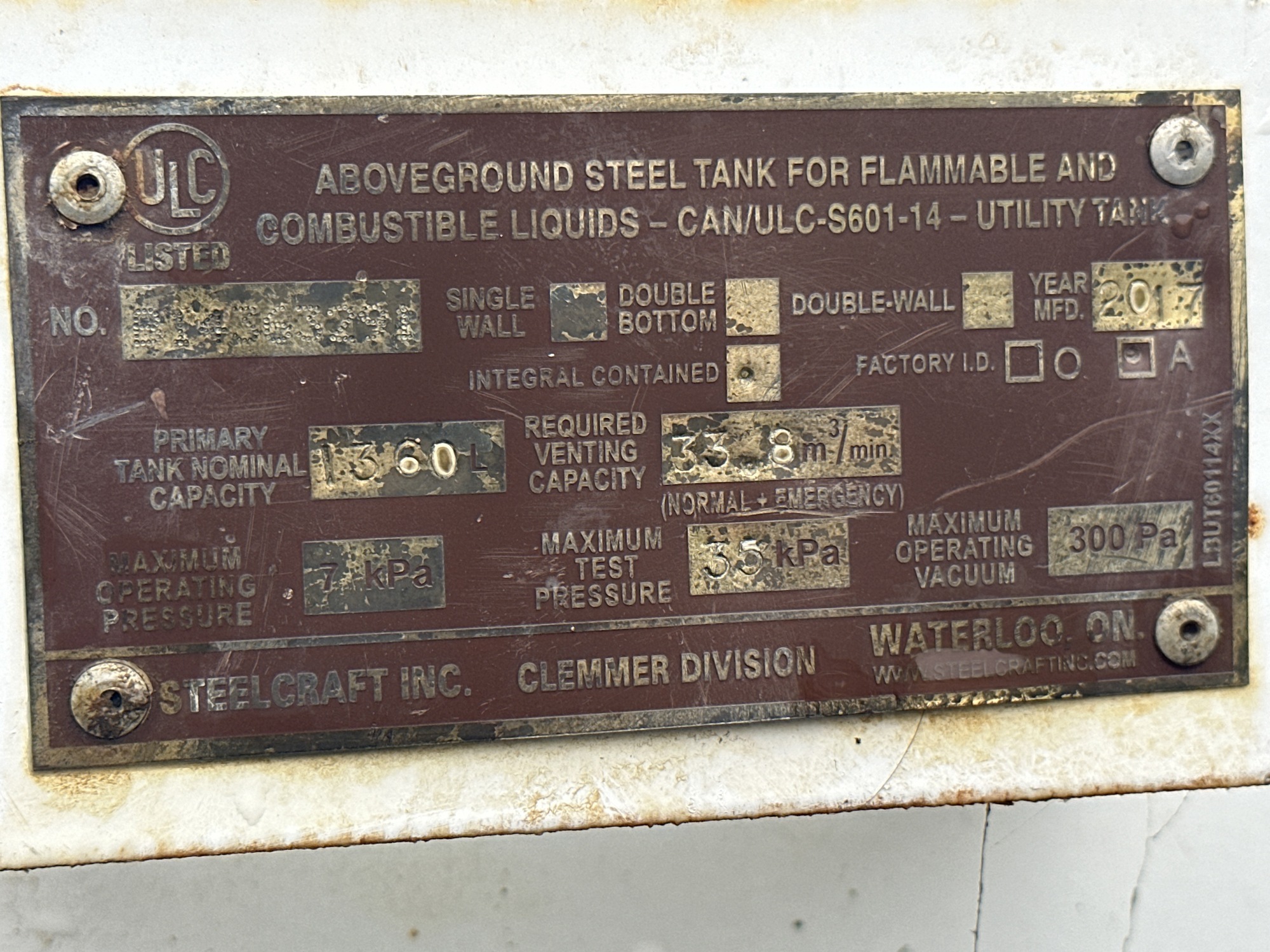 Primary Tank Nominal Capacity: 1360 L