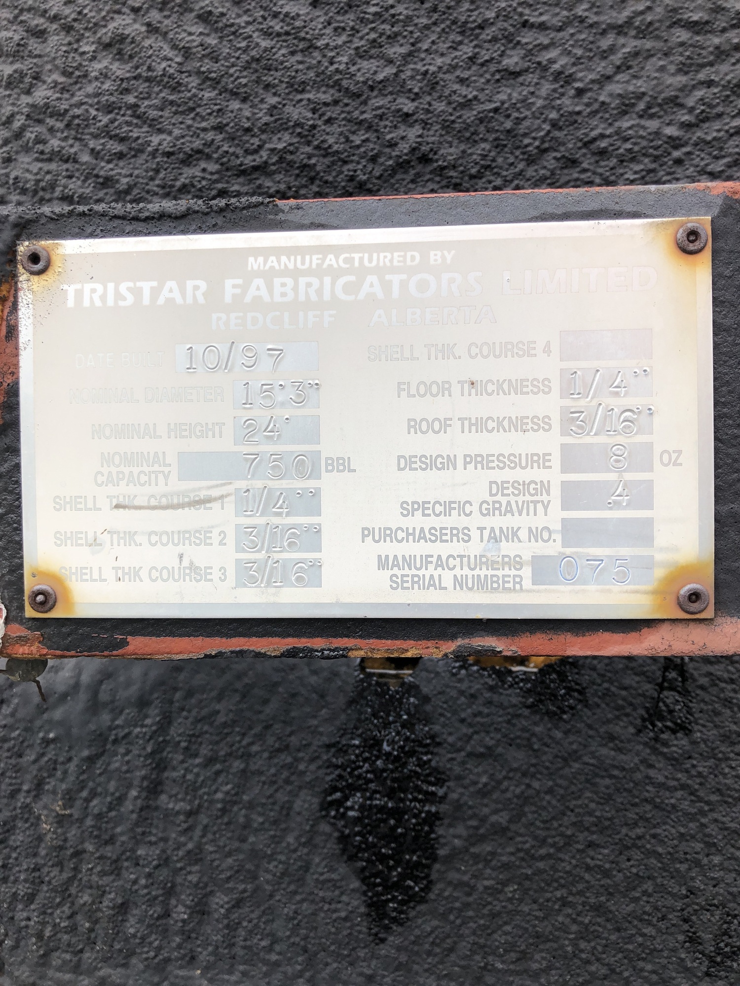 Tank Capacity (BBL) 750