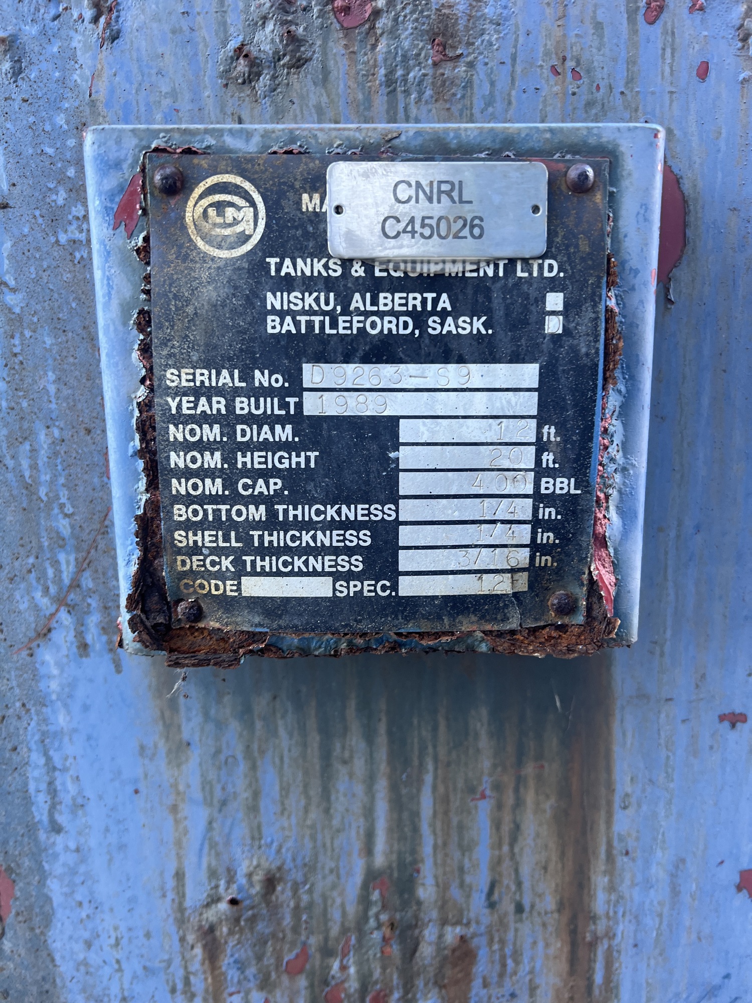 Tank Capacity (BBL) 400