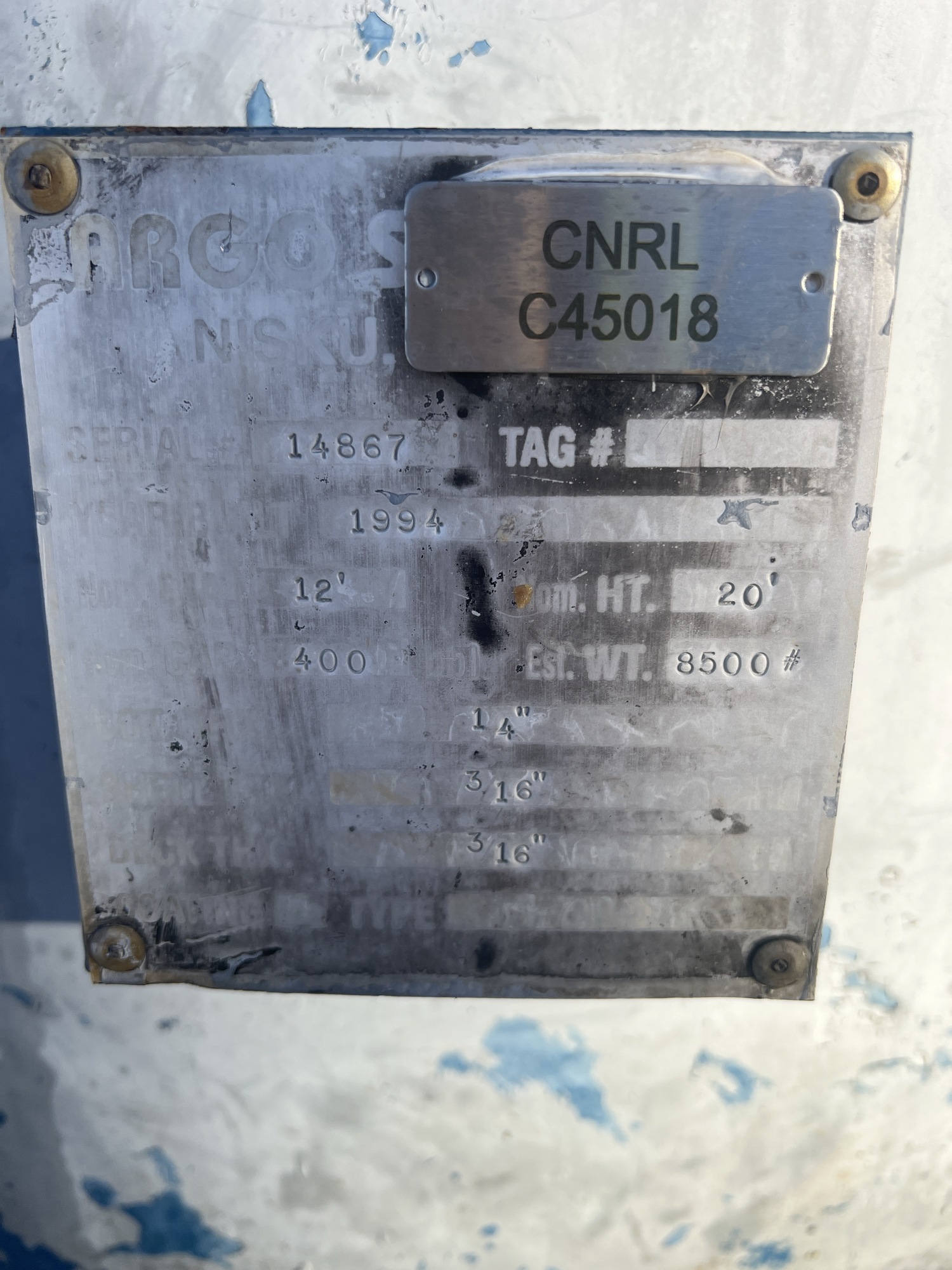 Tank Capacity (BBL) 400