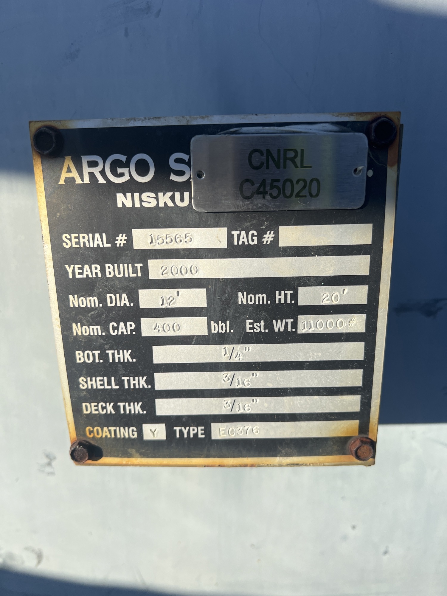 Tank Capacity (BBL) 400