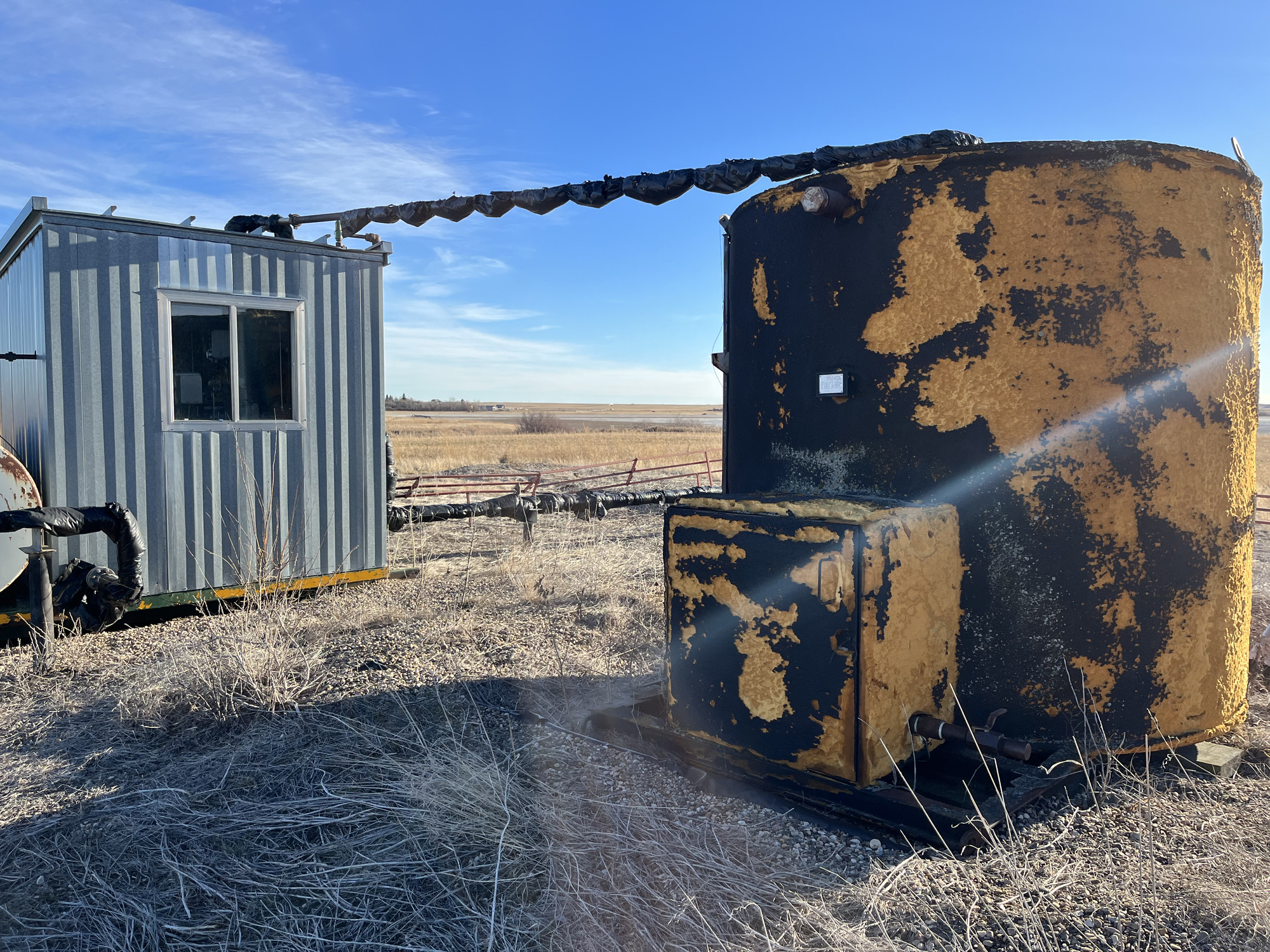 50 BBL produced water tank on skid located at 02-05-038-18W4 (100/14-32 downhole)
