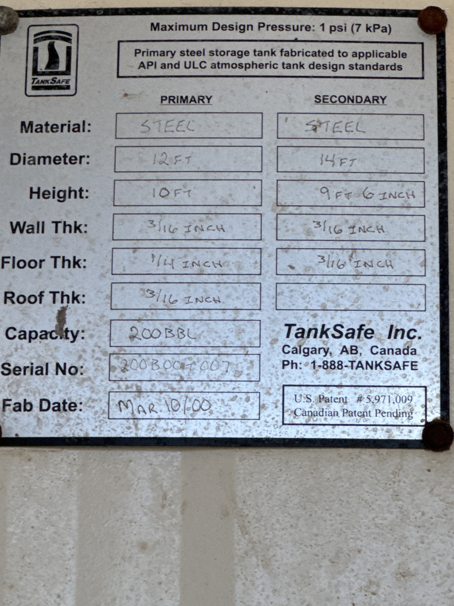 Tank Capacity (BBL) 200