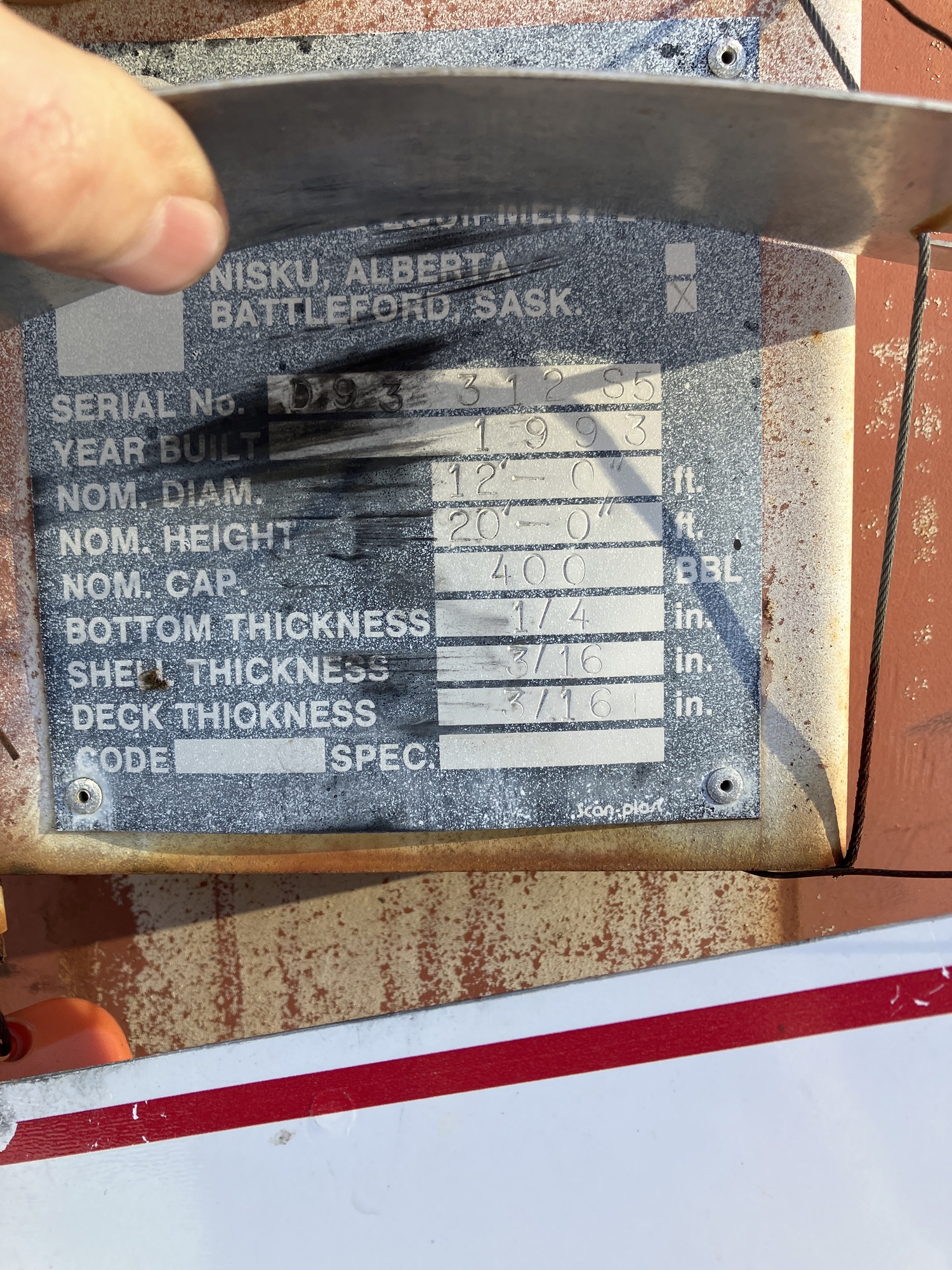 Tank Capacity (BBL) 400