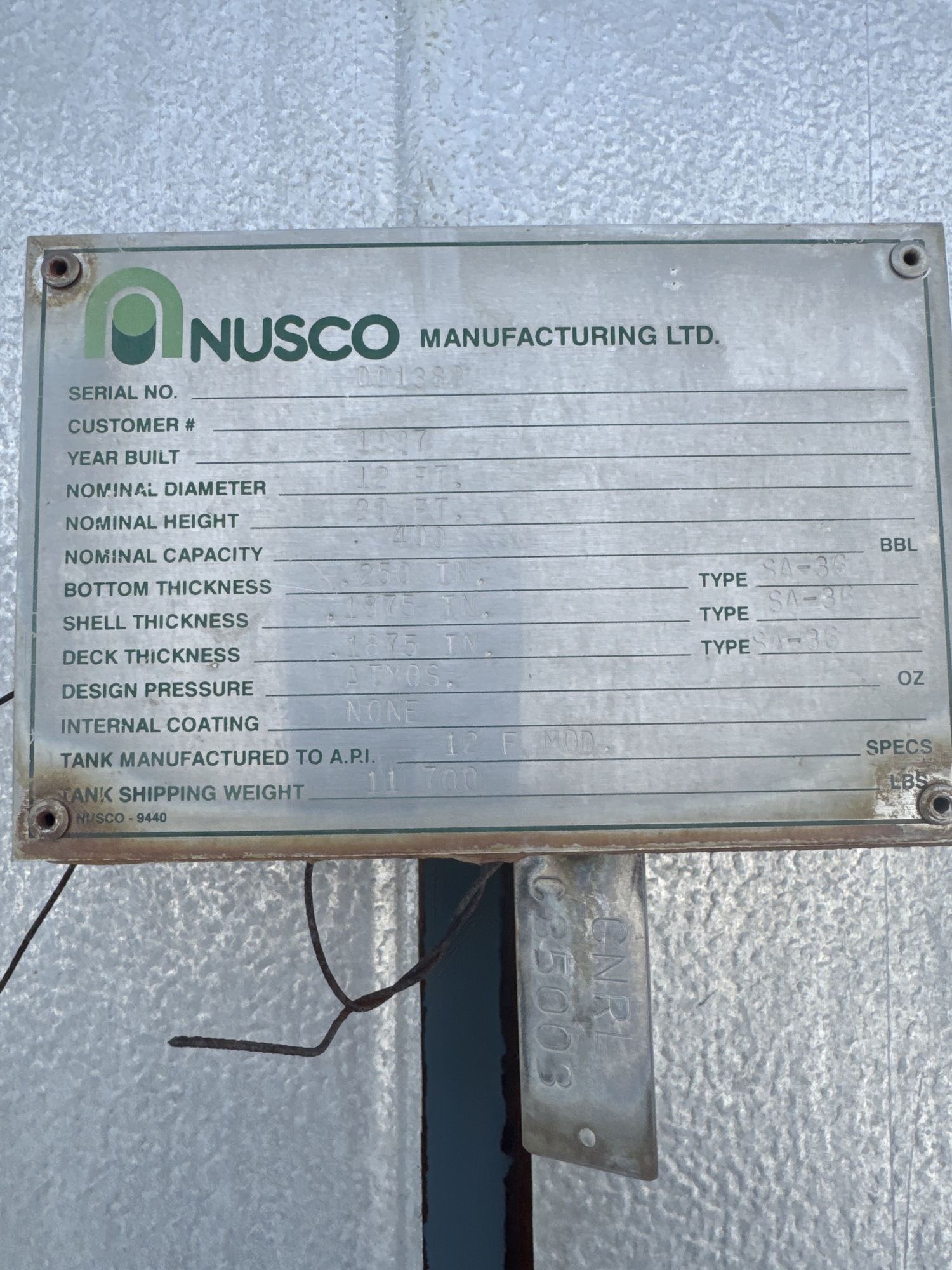 Tank Capacity (BBL) 400