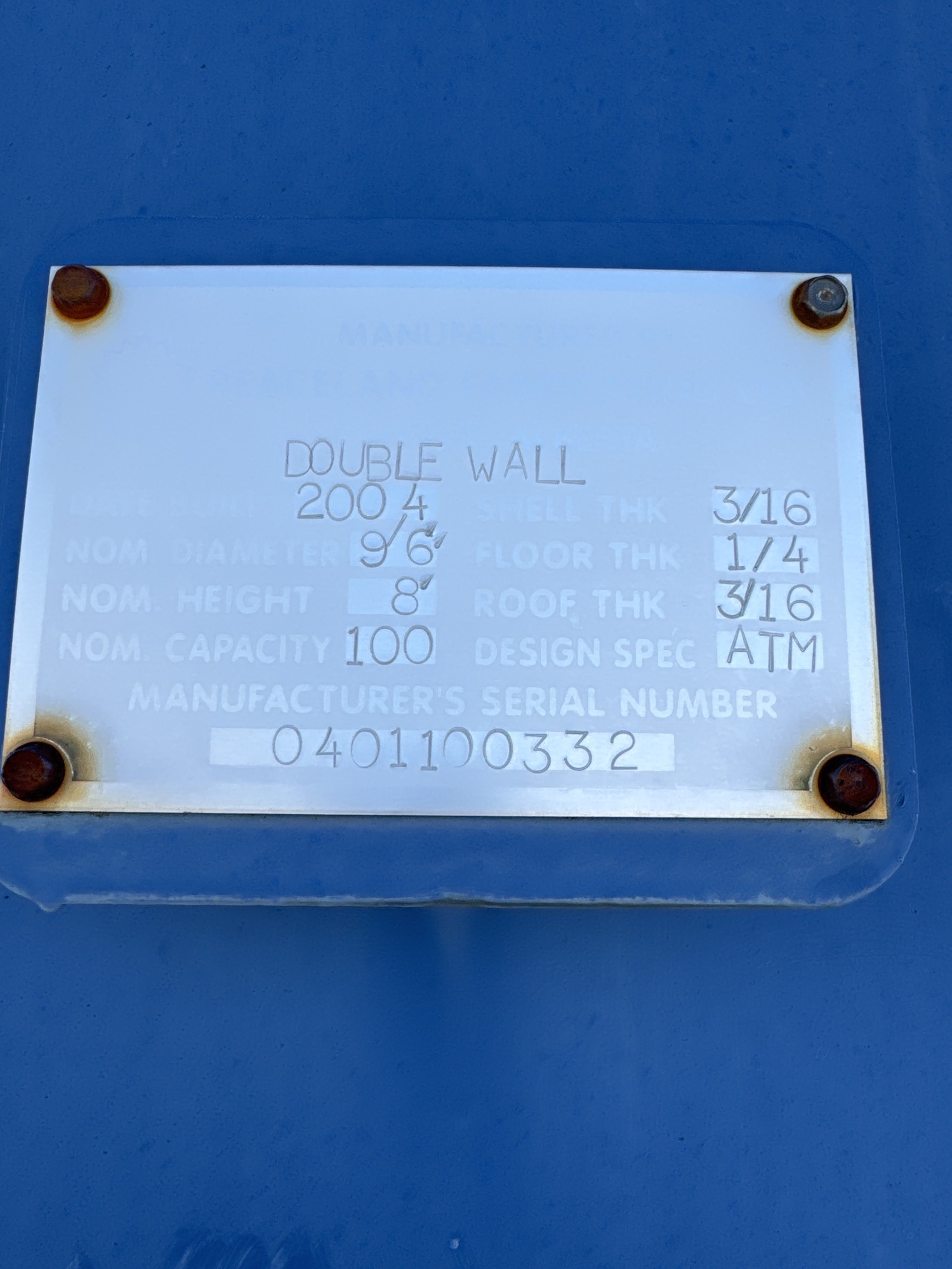 Tank Capacity (BBL) 100