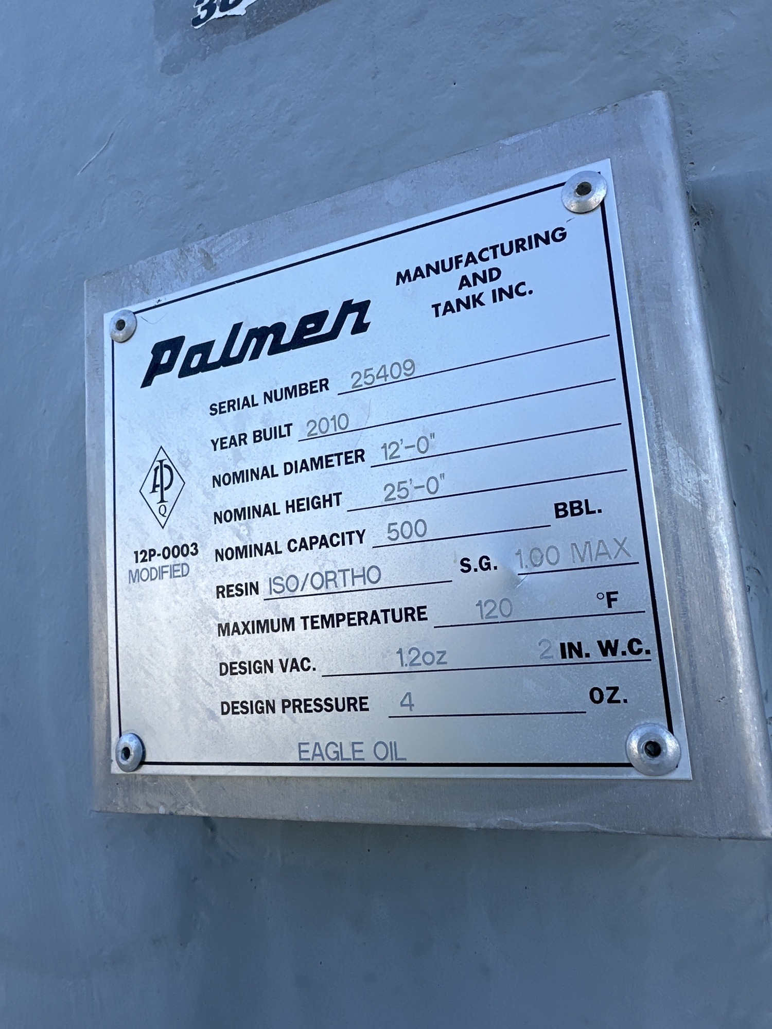 500 BBL 4 Oz Storage Tank