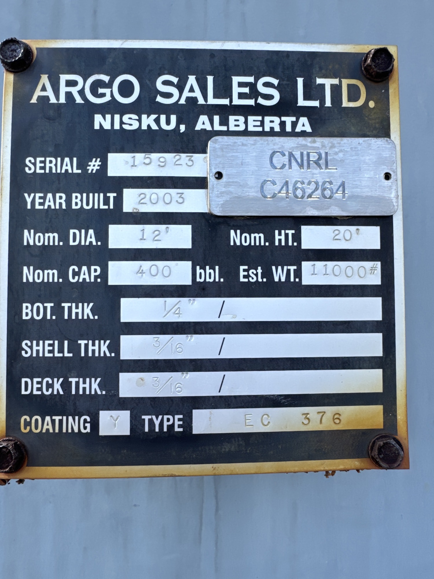 Tank Capacity (BBL) 400