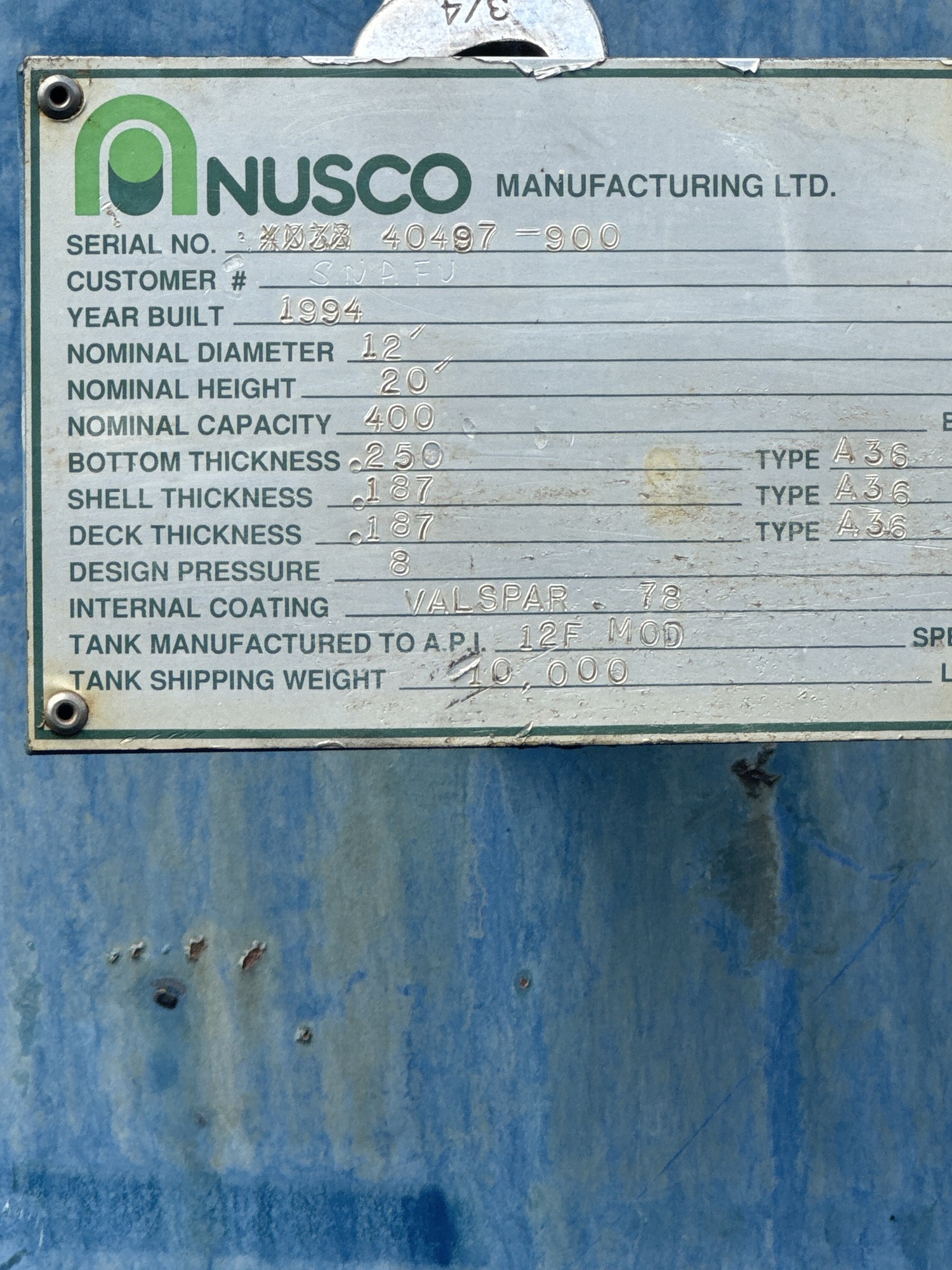400 bbl tank