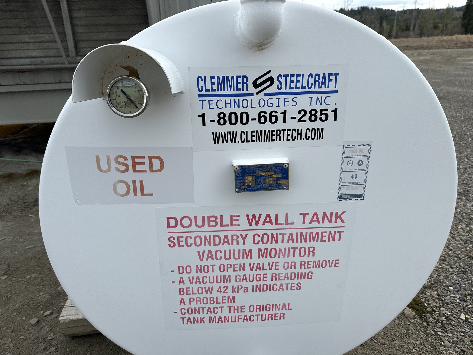 Double Wall Used Oil Tank - Vacuum Monitored