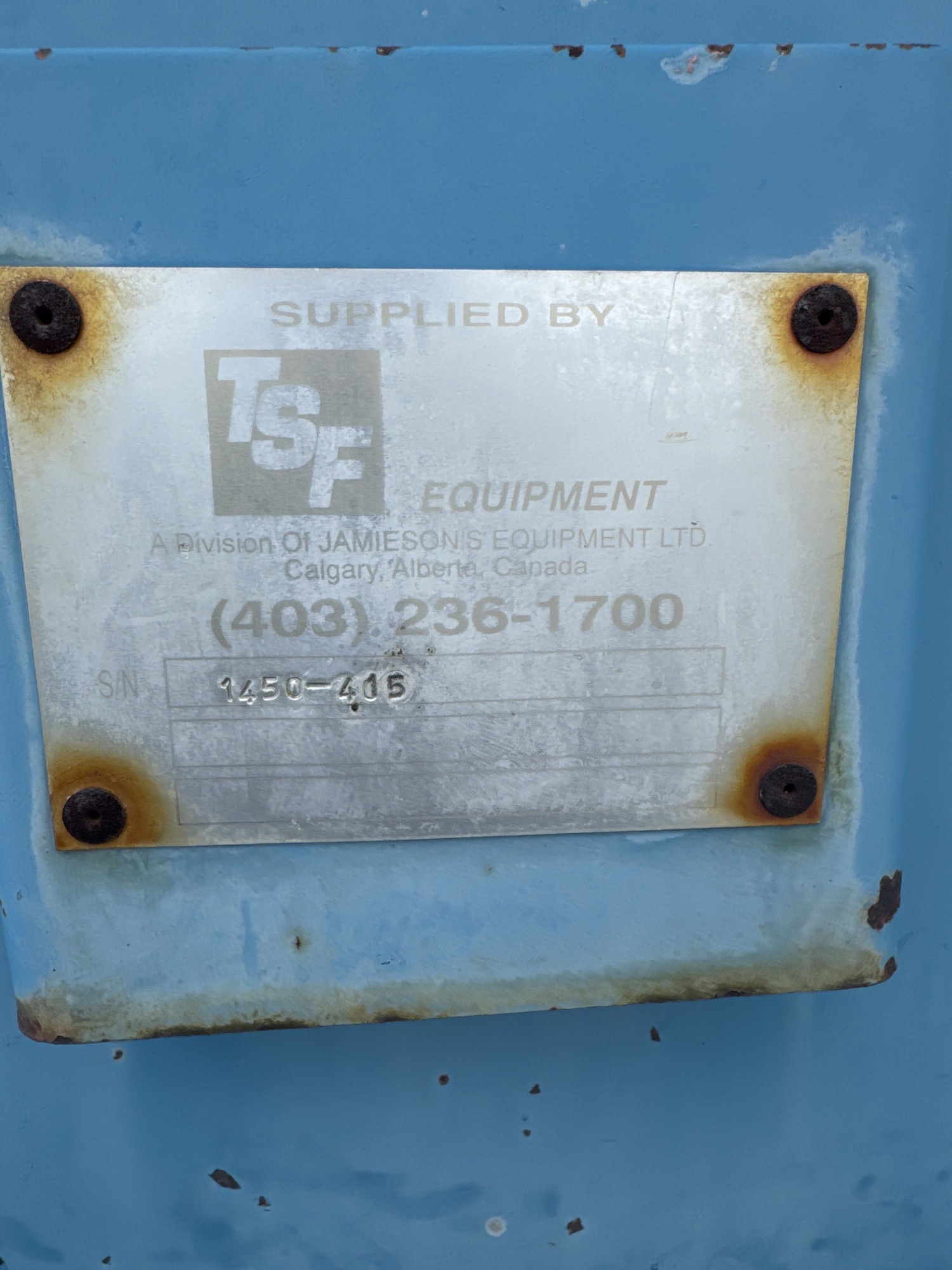 Manufacturer TSF EQUIPMENT
