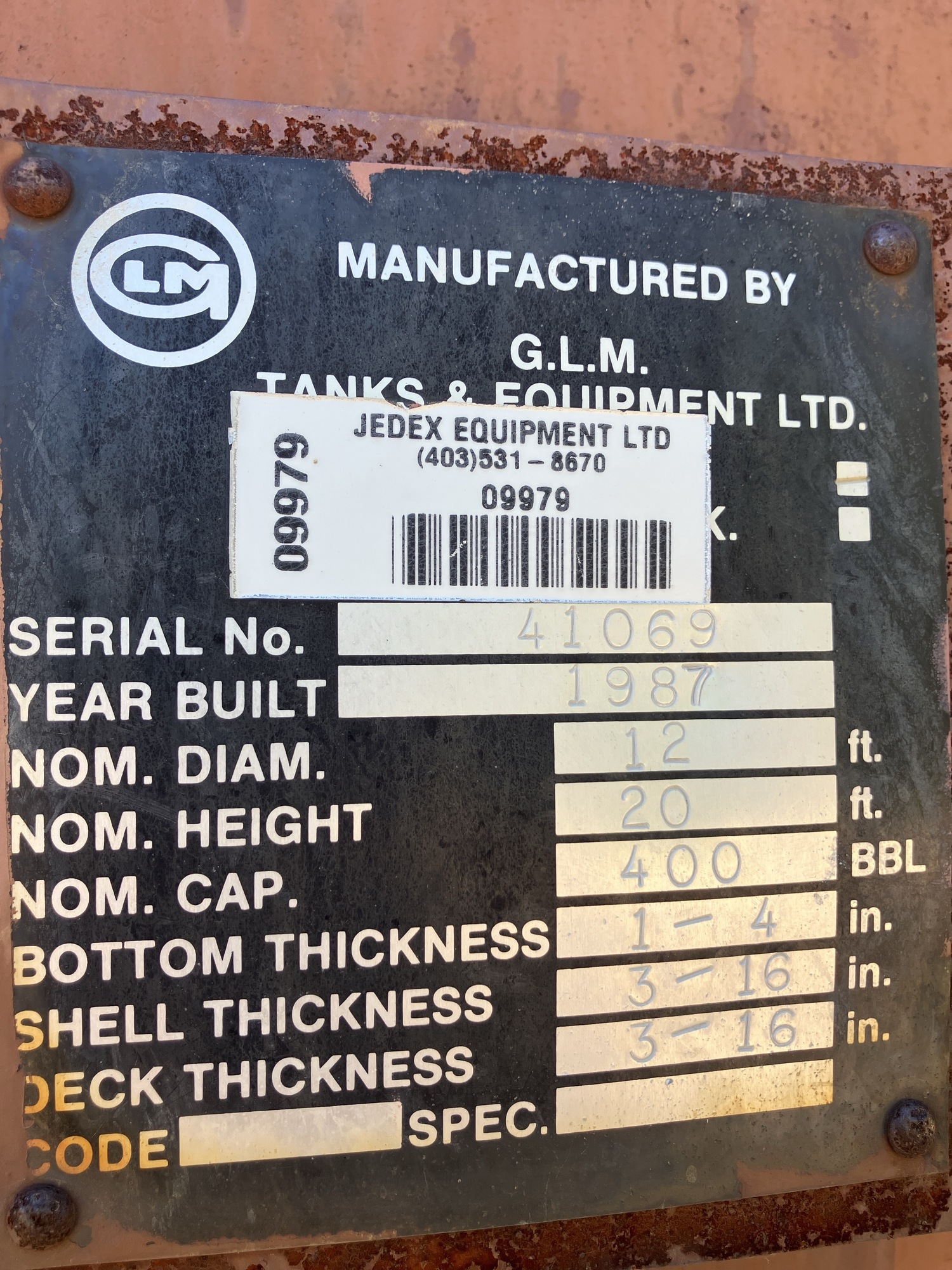Tank Capacity (BBL) 400