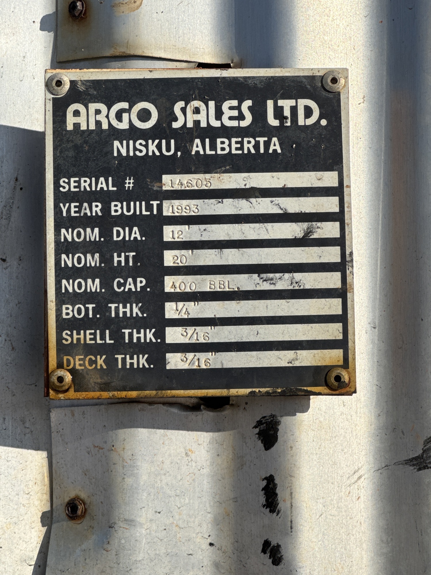 Tank Capacity (BBL) 400